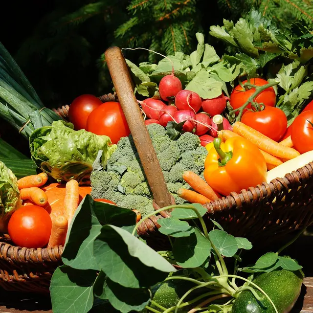Vente directe, fruits et légumes de saison.