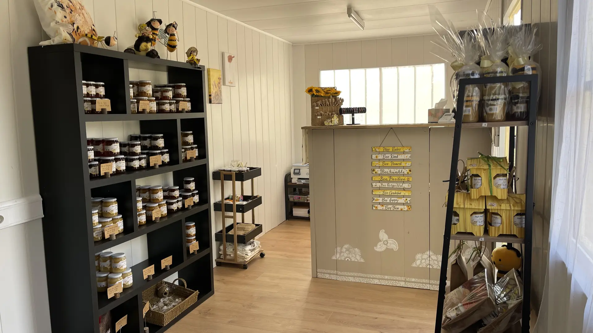 Depuis novembre dernier, nous avons ouvert notre boutique sur l'exploitation même, venez découvrir toute notre gamme; miels, biscuits, confisries et autres produits derivés...