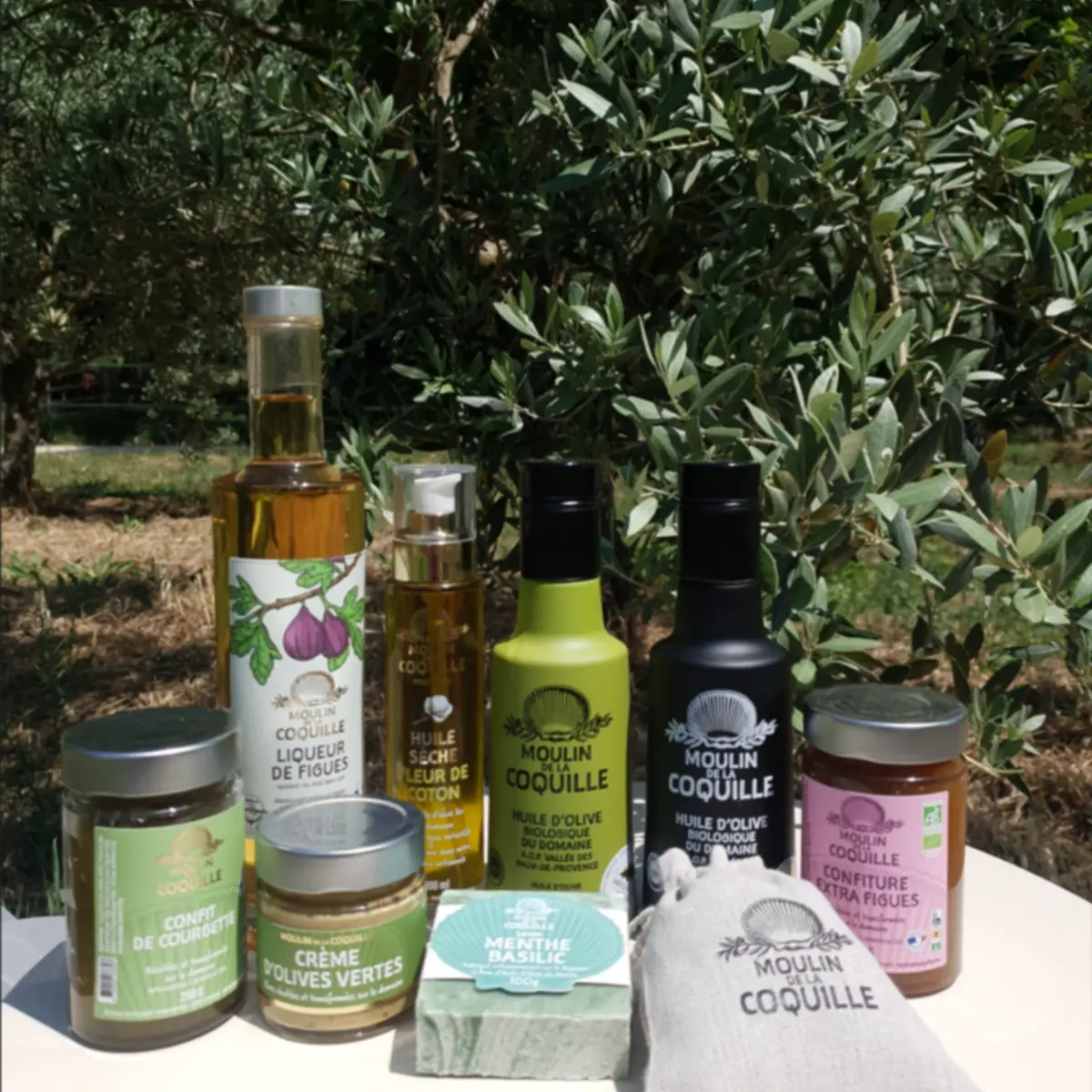 Bienvenue au Moulin de la Coquille, votre producteur d'huile d'olive artisanale situé au cœur de la magnifique Vallée des Baux, entre Fontvieille et les Baux-de-Provence. Sur notre domaine familial, nous cultivons avec passion cinq variétés d'olives : l'Aglandau, la Grossane, la Salonenque, la Verdale et la Picholine, transformées dans les 24 heures suivant leur récolte pour une huile d'olive vierge extra au goût fruité vert.