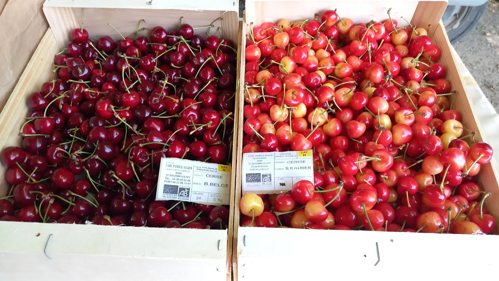 - cerise de table blanche "Rainier" et rouges de diverses variétés dont "Belge" durant le mois de juin ;