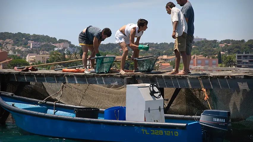 Production de loups, daurades et maigres dans la baie de Tamaris.