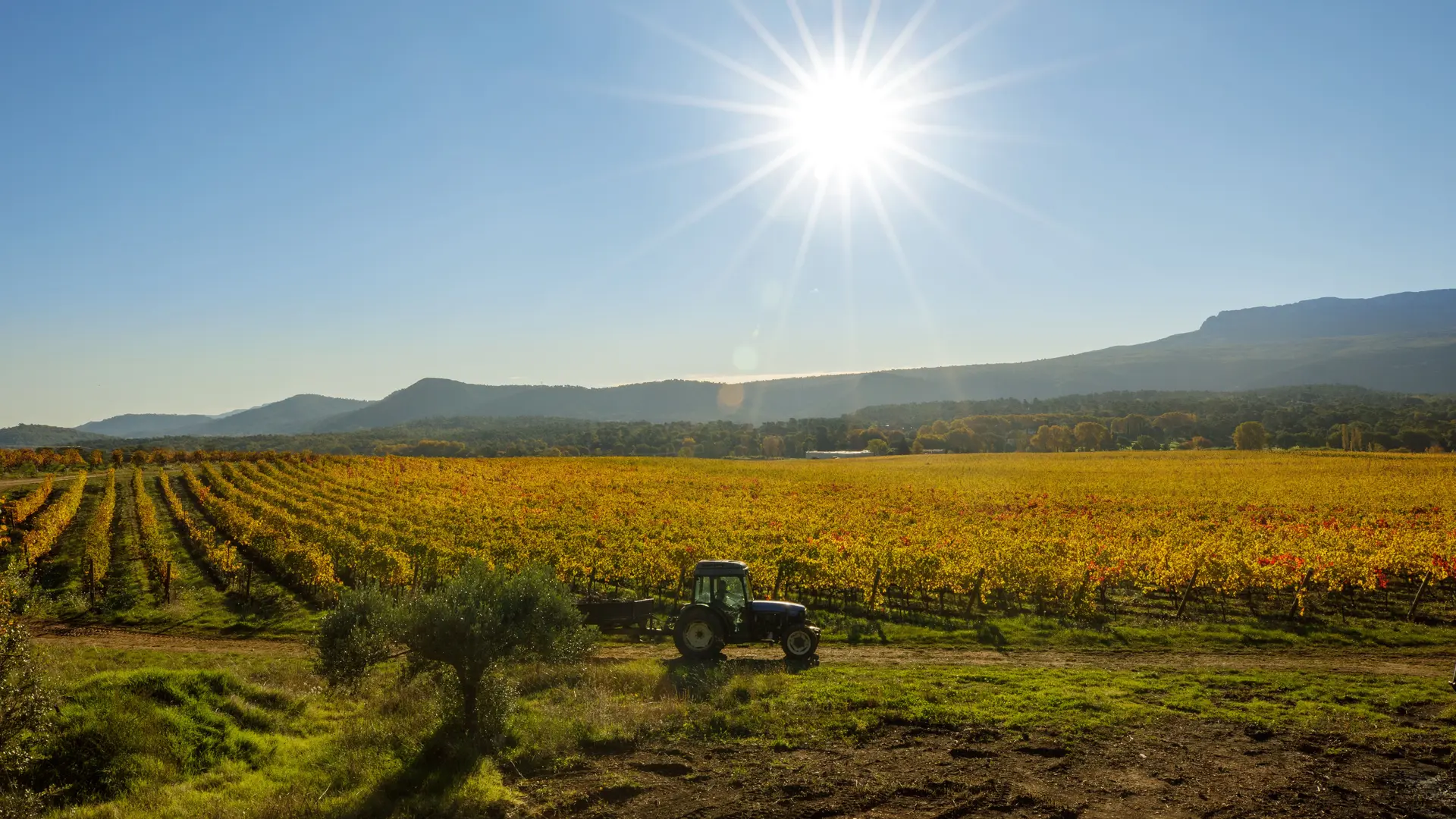 Les 46 hectares du domaine Triennes se situent à une altitude de 420 mètres au-dessus du niveau de la mer et sont adossés au Mont Aurélien, face au Massif de la Sainte-Baume. Cette situation assure des nuits fraîches, qui favorisent un long cycle végétatif de la vigne. Ces conditions sont particulièrement idéales pour obtenir de bas rendements, une belle acidité et assurer une complexité réelle aux vins.