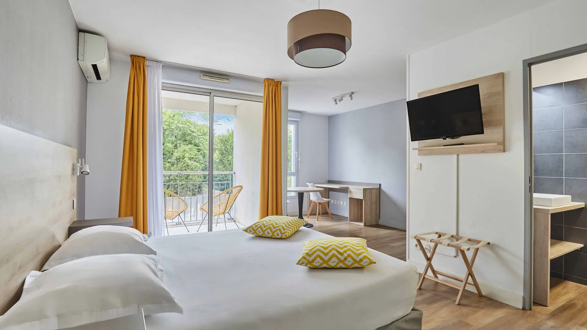 70 appartements (du studio au T3) avec balcon répartis sur 3 étages comprenant salle de bains baignoires ou douches, kitchenette équipée.