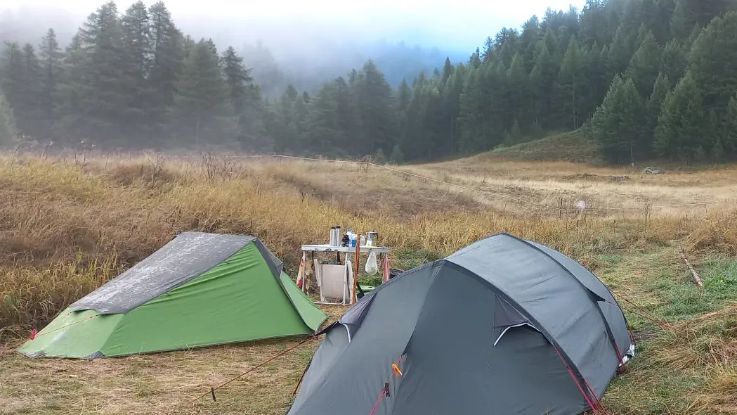 Tout est harmonieux ici : le hameau restauré avec sa chapelle, les prairies fleuries, la forêt de mélèzes, les deux sommets frontaliers qui dominent les vallées vaudoises et la plaine du Pô et les tentes confortables pour ceux qui restent un moment.