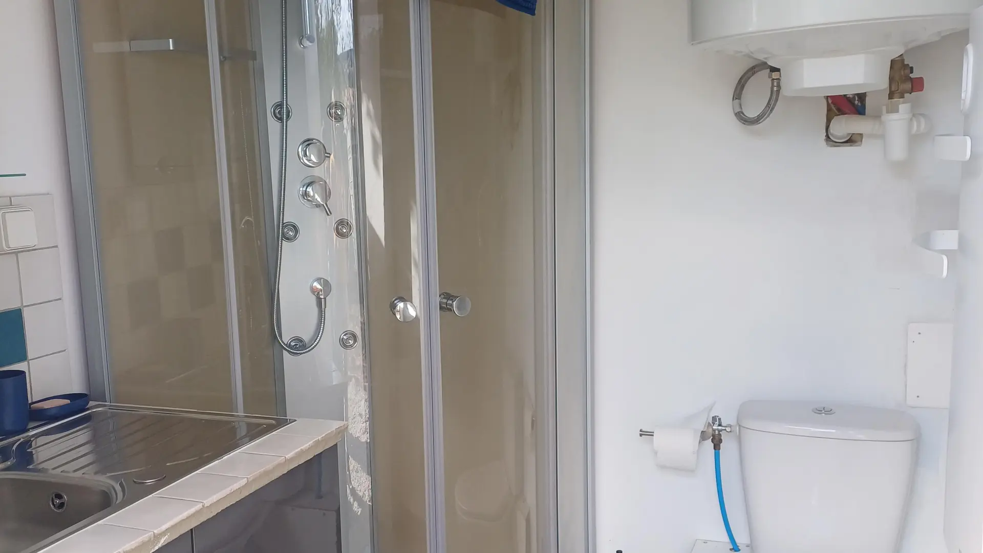 Vous aurez accès aux équipements de la ferme situés de l'autre côté de la route à environ 150 mètres : sanitaires avec lavabo, toilette, douche et sèche serviette, table de pique-nique et accès à l'électricité.