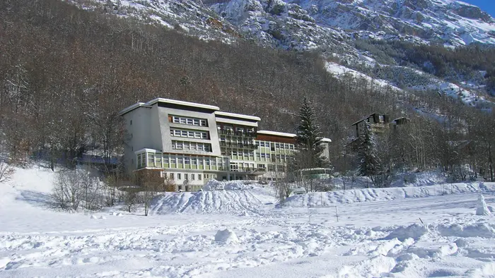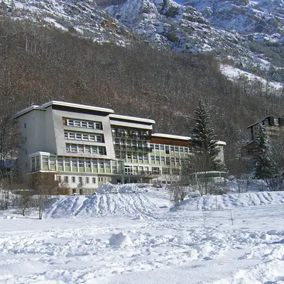 Aux portes du Parc National des Écrins. Grand bâtiment de 6 niveaux.