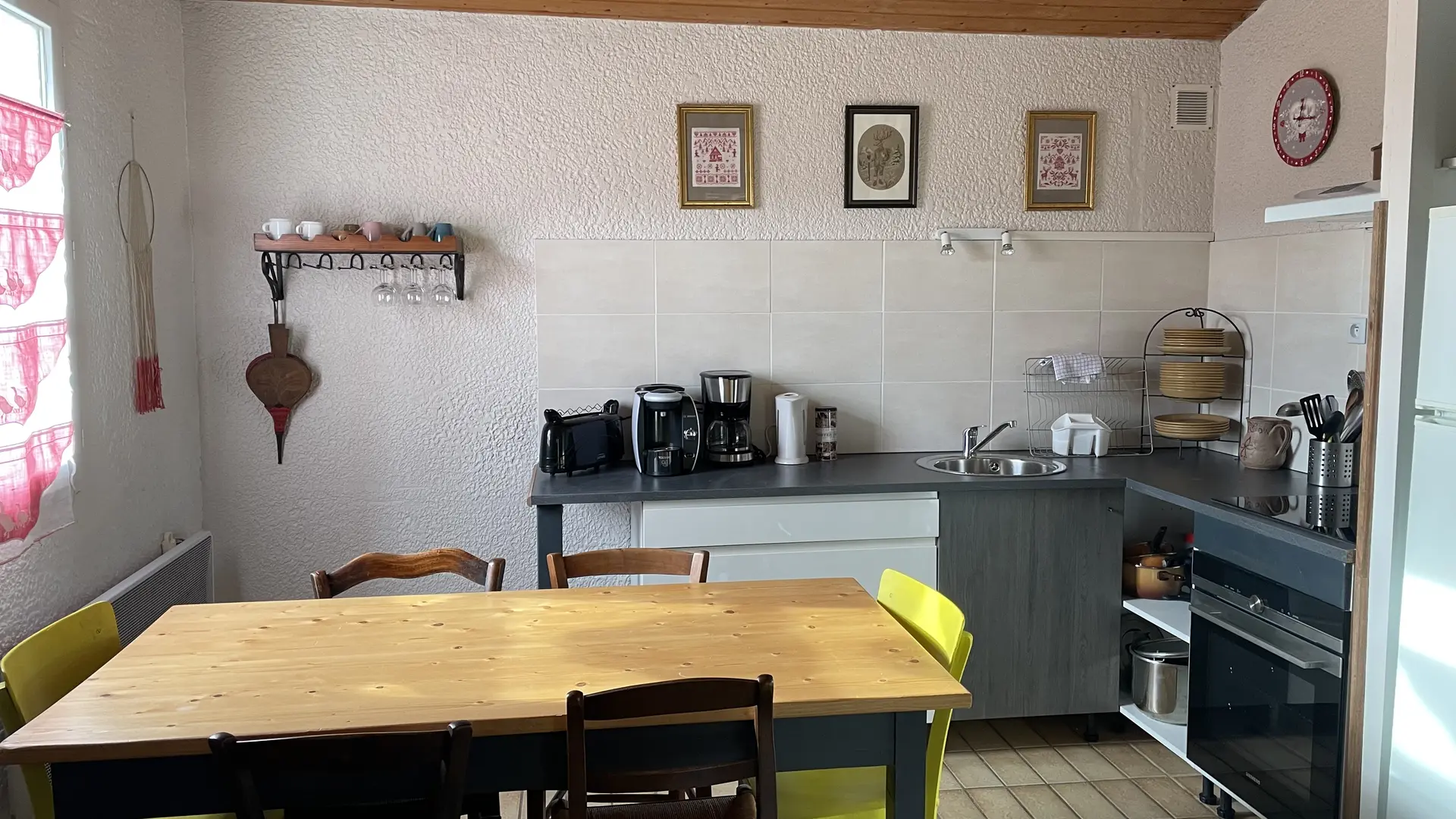 Nos gîtes sont composés d'une chambre avec un lit double 140 x 190, une chambre avec deux lit simples 90 x 190, un coin nuit avec un couchage 90 x 190, un convertible 140 x 190 dans la pièce de vie, cuisine équipée (four, plaques, hotte, frigo-congélateur, micro-ondes, machine à café, bouilloire, grille pain,...).