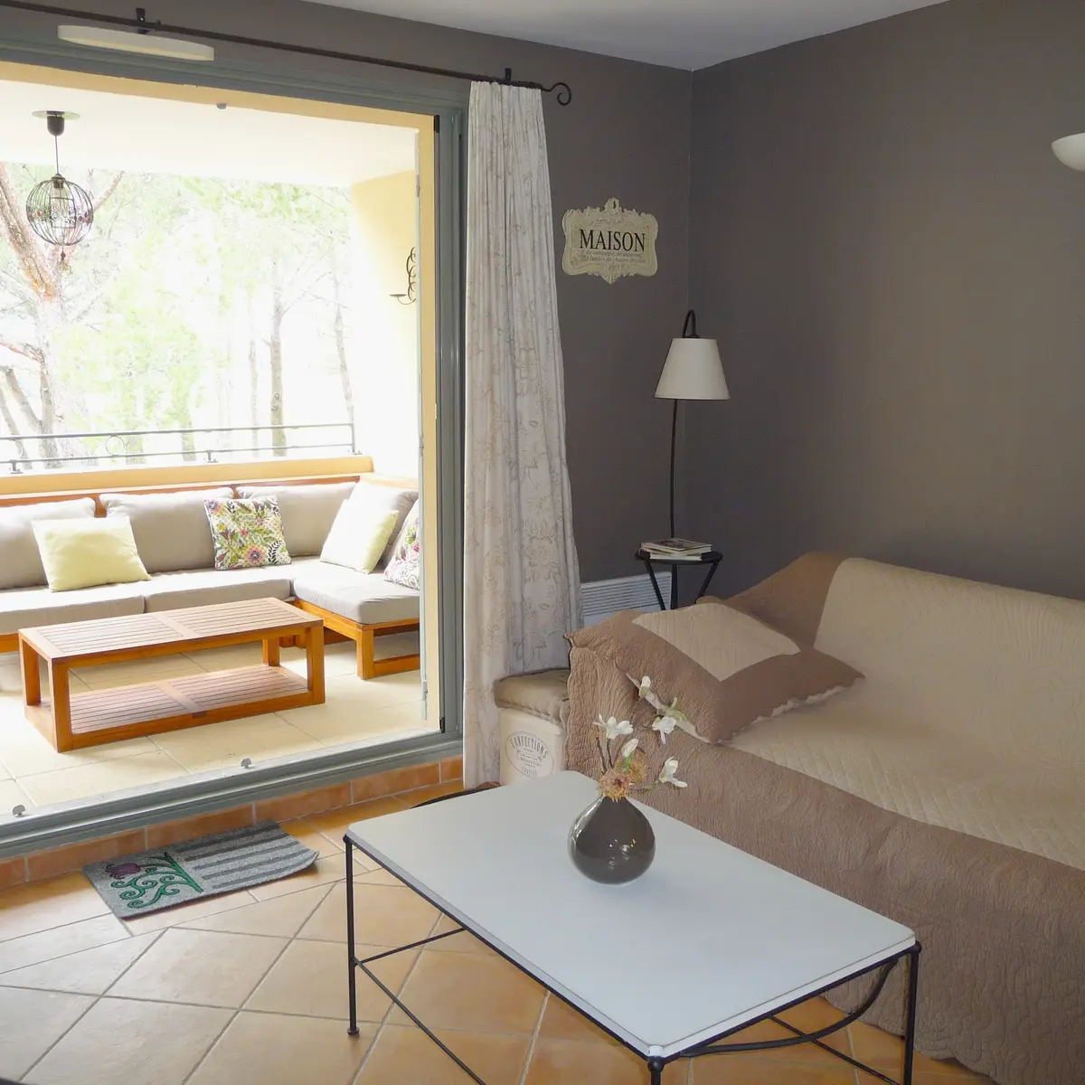 Appartement familial plein de charme, profitant d'un calme très appréciable (et des cigales en été !) ainsi que d'une superbe vue sur le golf de Saumane et la vallée de la Sorgue. Idéalement situé entre L'Isle-sur-la-Sorgue et Fontaine-de-Vaucluse.