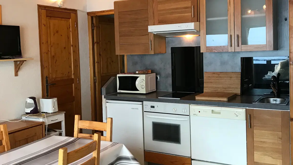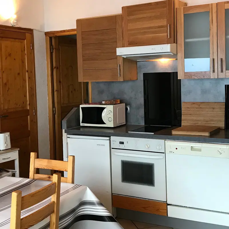 Appartement de 40 m2 dans petite résidence privée et rénovée. Balcon SUD, coin montagne, plaques à induction, salle de bain neuve. Location de draps.