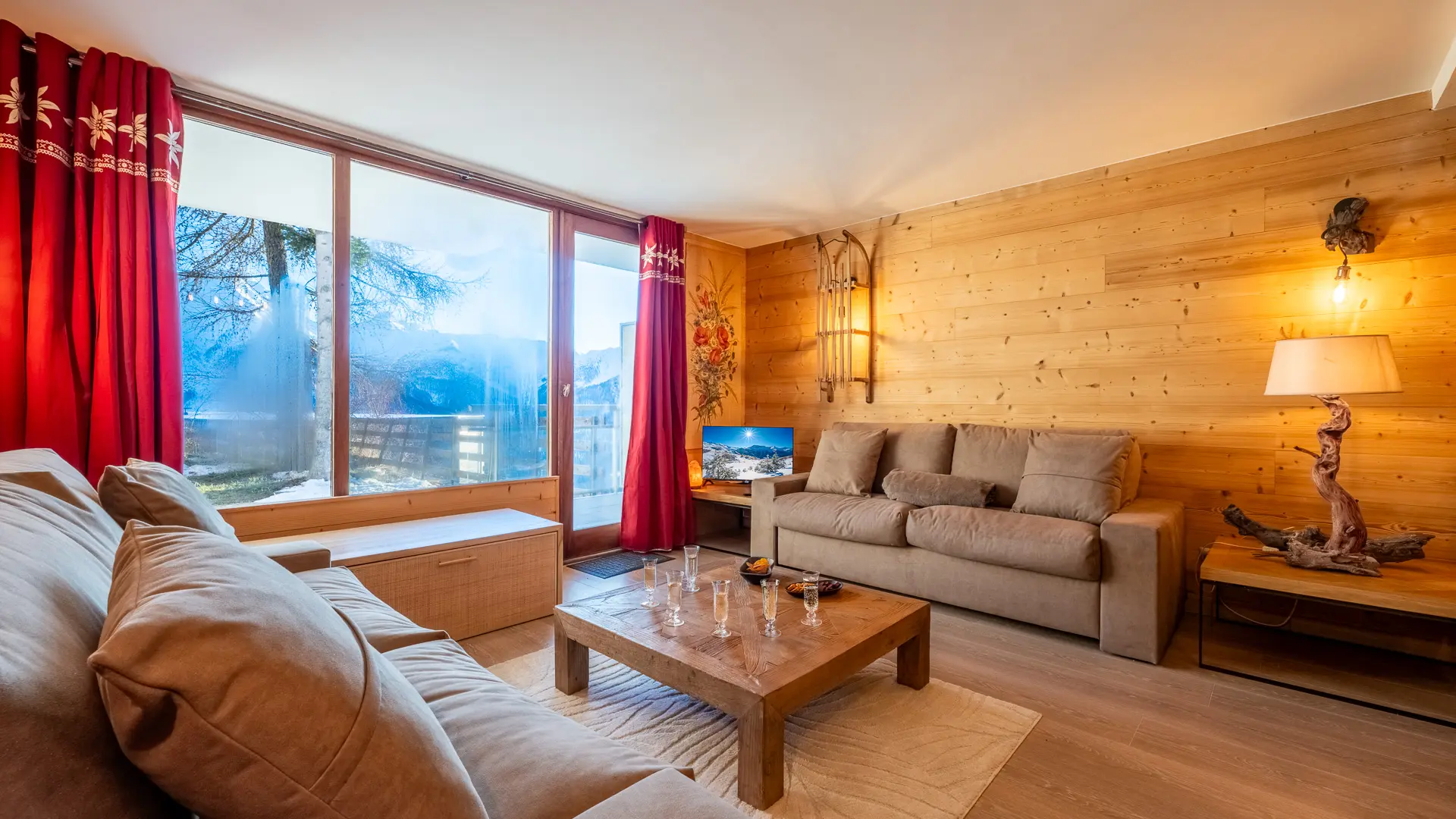 Appartement rénové en centre station en face du front de neige des Drapeaux avec rez de jardin.