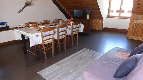 Location dans ancienne ferme rénovée style chalet, 4/6 personnes, bel appartement de 65 m² très spacieux en balcon de la Durance entre lac et montagne. Situé à 5 kms sur les hauteurs d’Embrun avec vue panoramique sur la vallée. Au calme, indépendant avec extérieurs, nombreuses ballades en moyenne et haute montagne (découvrez la faune sauvage : chamois, marmottes), à 600 m de la rivière, à proximité du lac de Serre-Ponçon, du plan d’eau d’Embrun (plages, activités nautiques, pèche) L’appartement peut accueillir 6 personnes maximum. Il est composé d’un grand séjour avec banquette, table, chaises, TV, un balcon couvert. Trois chambres (deux avec un lit pour deux personnes, une avec lits superposés), une cuisine équipée, une salle de bains, un WC indépendant, une salle d’eau (douche, lavabo, WC). Au niveau équipements : gazinière avec four, deux frigos, lave-linge, lave-vaisselle, micro-onde, cafetière, bouilloire, grill pain et le nécessaire pour cuisiner. A l’extérieur terrasse avec salon de jardin, barbecue. Parking privé. Les animaux ne sont pas admis. Venez-vous ressourcer dans un environnement magique, nous serons heureux de vous accueillir et de vous conseiller.