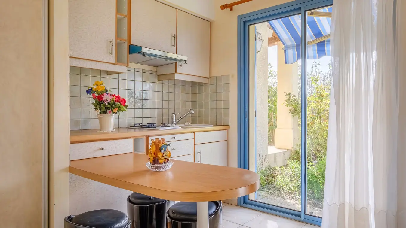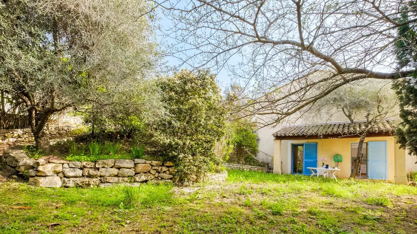 Appart de 50m² pour 2 à 4 personnes, salle à manger extérieure 25m² couverte par une Pergola, avec jardin privatif 250m², piscine 10x7m, traitement Cu-Ag sans chlore ni sel, sauna pour 6 personnes, location linge.