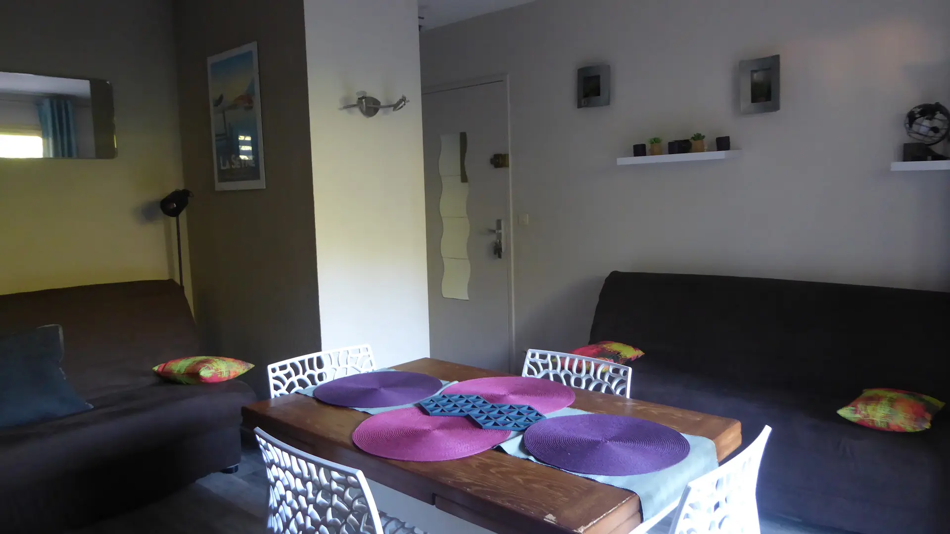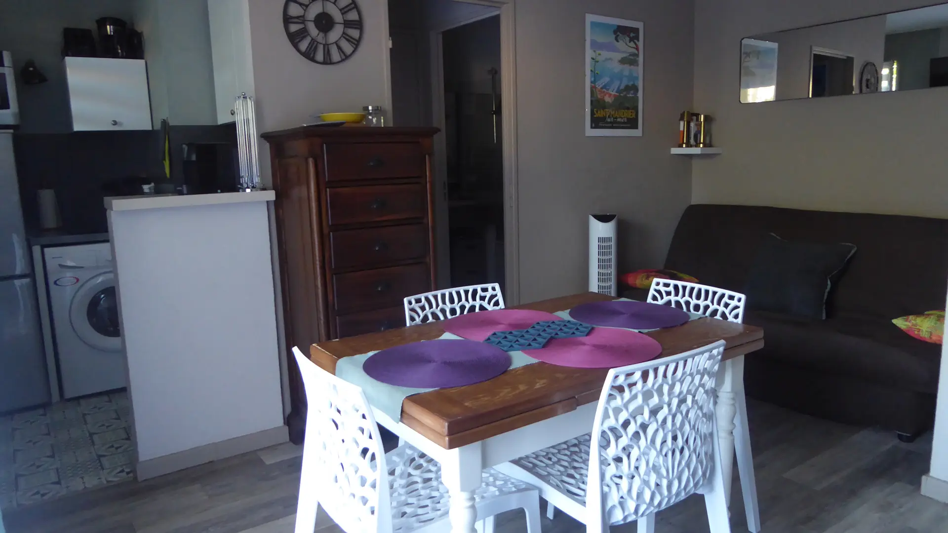 Comprenant un salon séjour avec canapé convertible (clic-clac 140*200 équipé d'une couette), un BZ ( lit double 160*200 équipé d'une couette). TV écran plat, 1 table 4 chaises, 1 ventilateur
