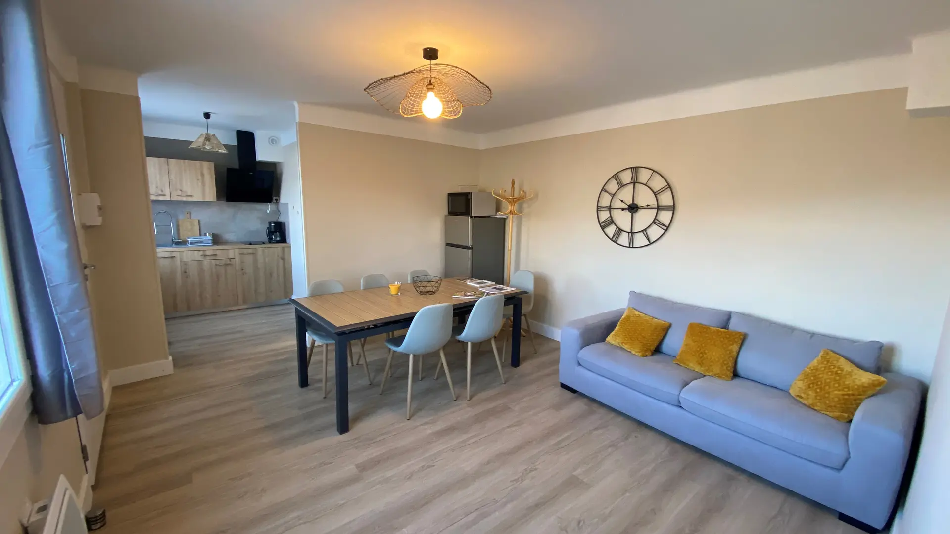 Gîte de séjour de 36 m² en plein cœur du village, séjour avec coin cuisine, chambre séparée avec lits deux places, canapé convertible. Gîte rénové en 2022, tout équipé et très confortable avec une vue exceptionnelle.