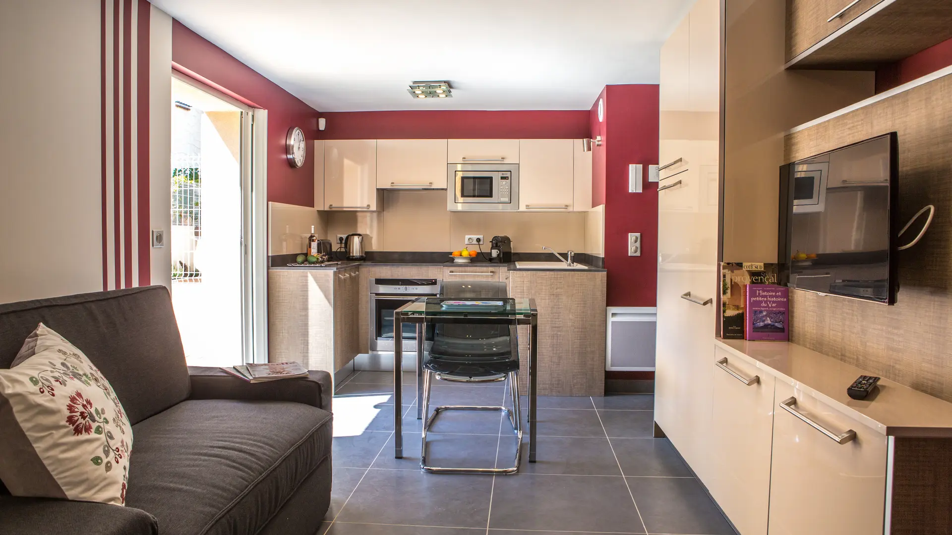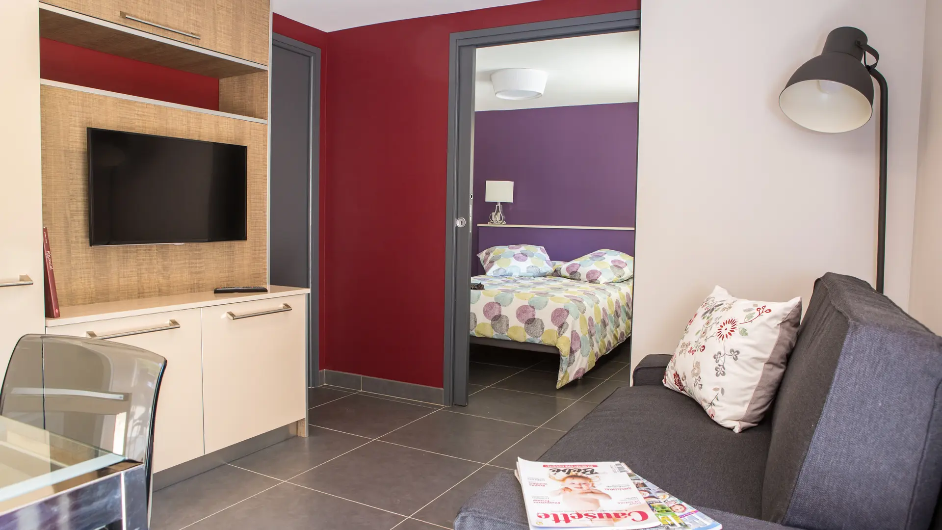 1 pièce à vivre avec canapé convertible , tv connectée.