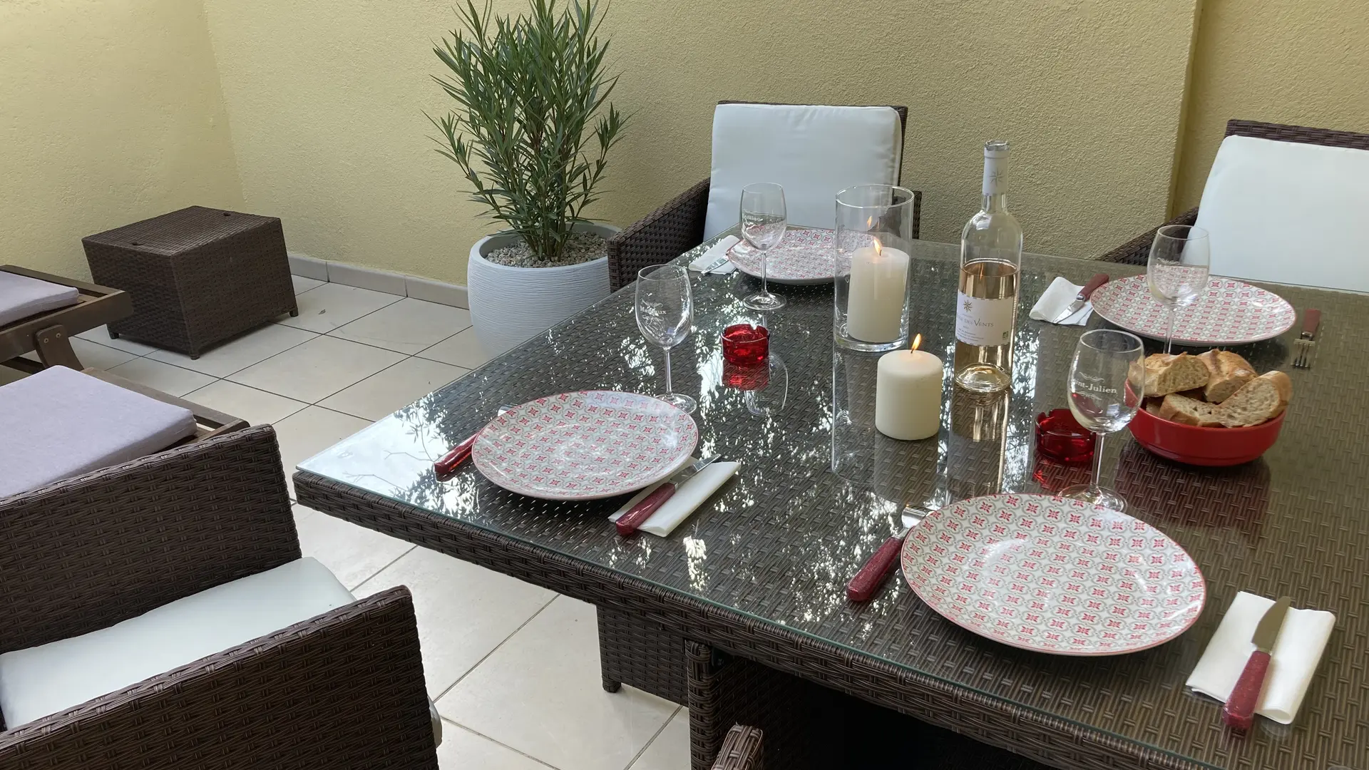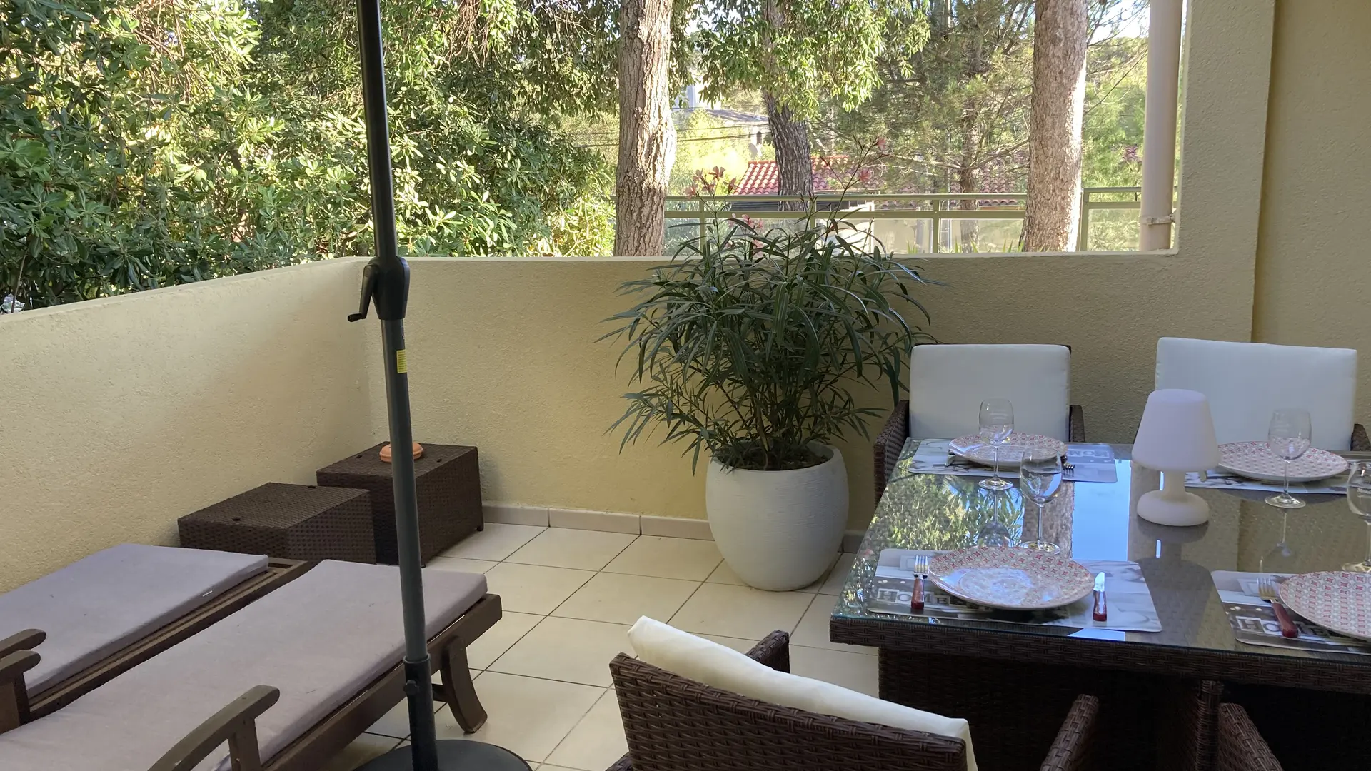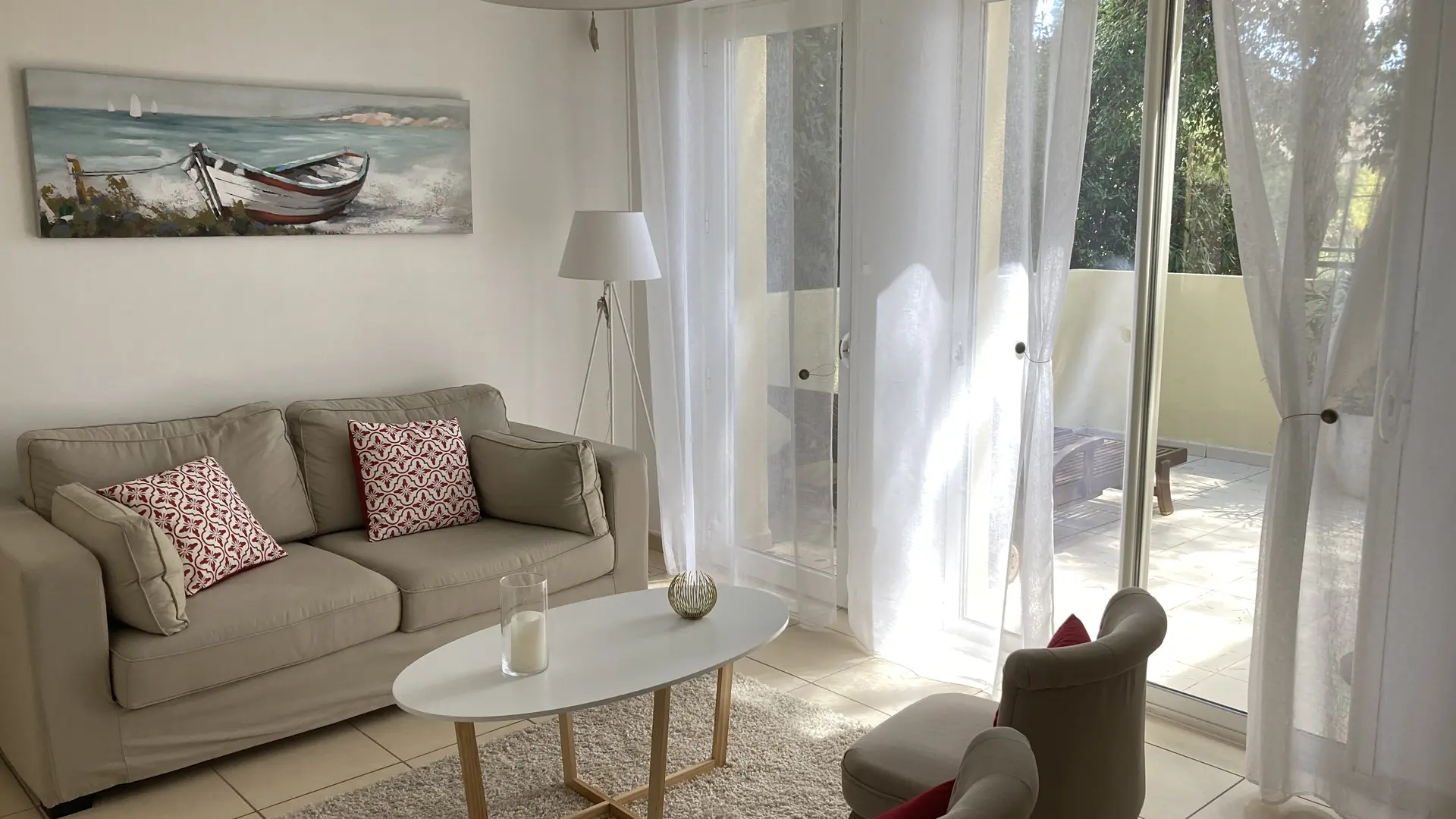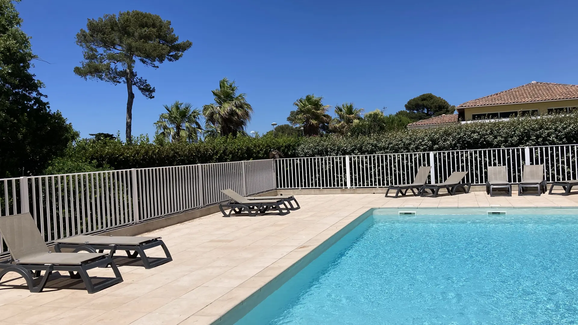 Le bien est très lumineux avec terrasse (transats et salon extérieur), dans une résidence très calme avec piscine.
