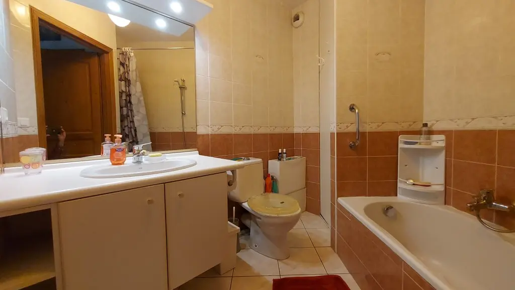 - belle salle de bain avec combiné douche-baignoire