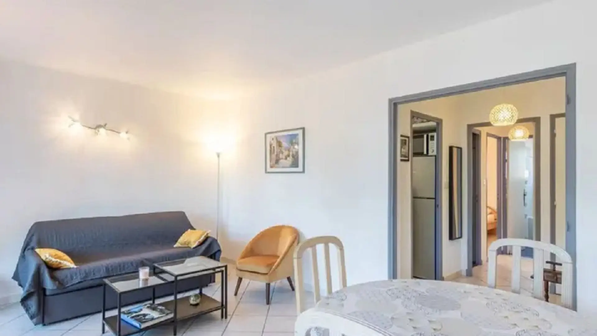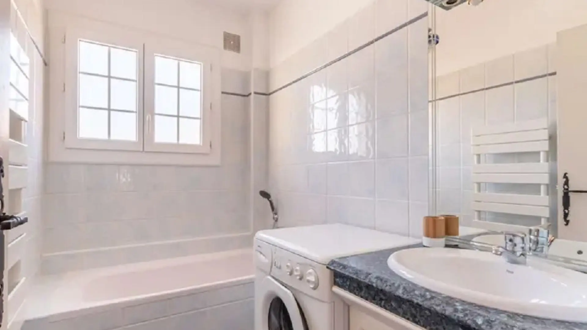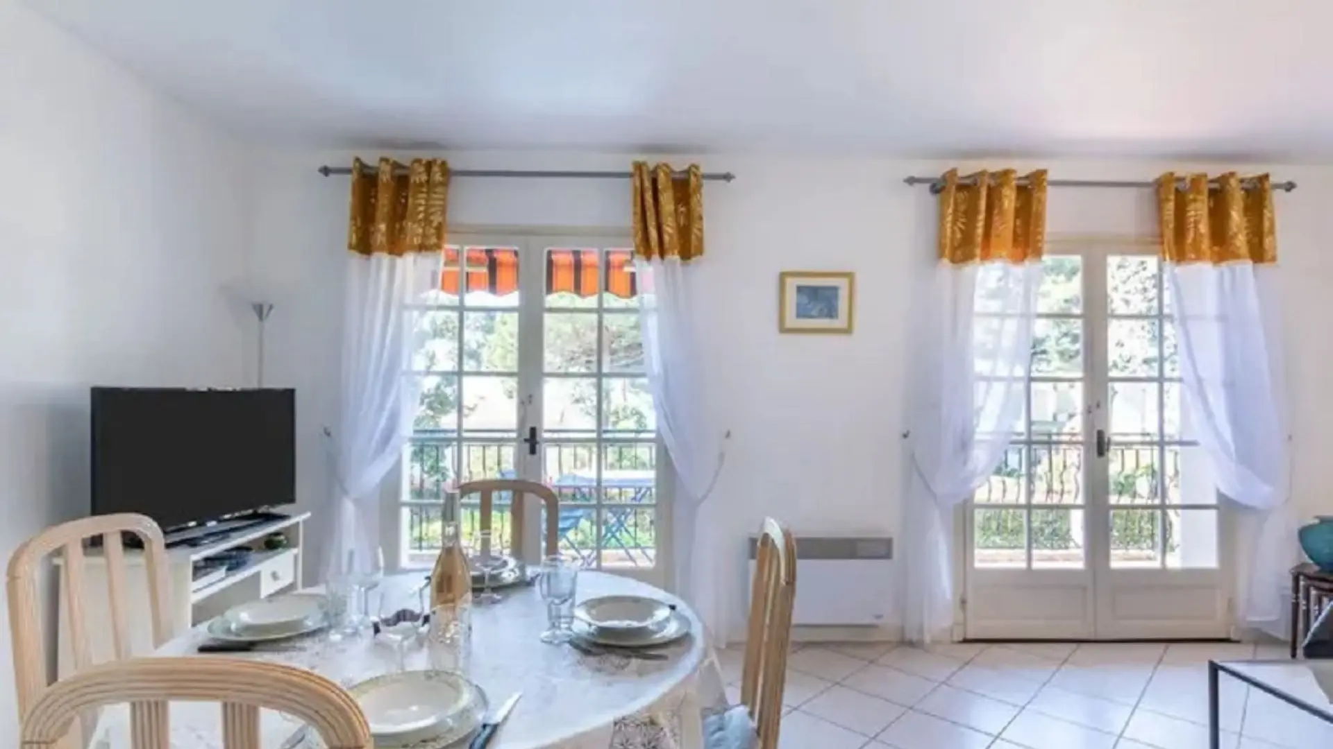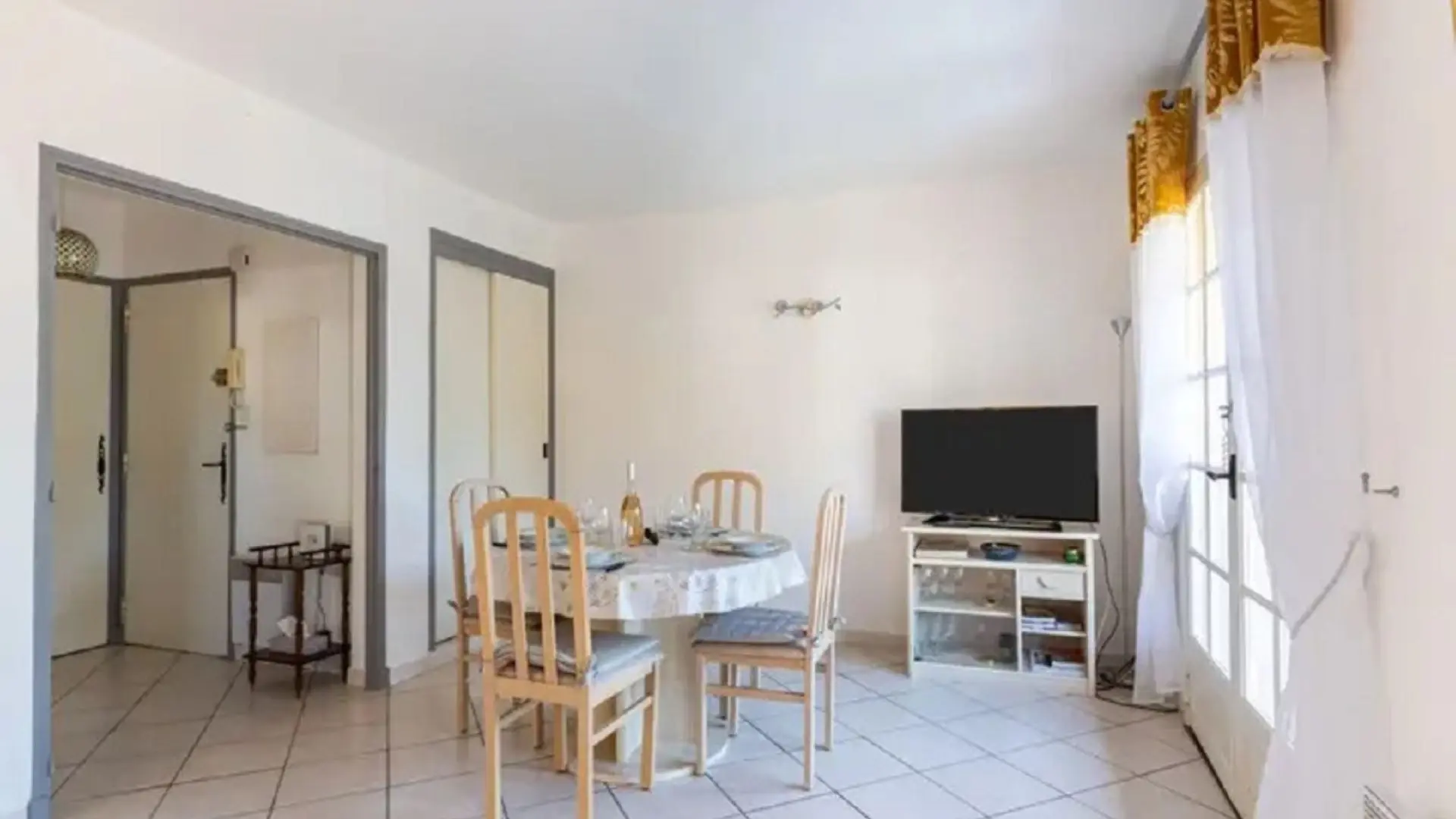 Coin cuisine (lave-vaisselle, 2 plaques vitrocéramiques, four micro-ondes, congélateur, cafetière électrique). Salle de bains, WC séparé. Chauffage électrique. Balcon 12 m2. Mobilier de balcon. Vue éloignée sur la mer. A disposition: lave-linge, sèche-cheveux. Internet (Connexion WIFI, gratuit). Garage No 51, hauteur 200 cm, largeur 240 cm. Veuillez noter: maximum 1 animal/ chien autorisé. TV seulement FR. Détecteur de fumée. Logement non accessible aux personnes à mobilité réduite.