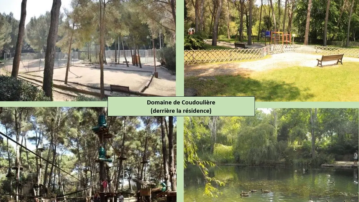 Vous disposerez en bas de la résidence de commerces de proximité (supérette, boulangerie, pharmacie, tabac presse, restaurants, coiffeur, bars lounge). Au dos de la résidence, magnifique parc de la Coudoulière avec lacs. Sans prendre la voiture, vous pourrez faire de belles balades ou footing, de l’accrobranche (parc Coudou), du mini-golf, du tennis, parc skateboard.