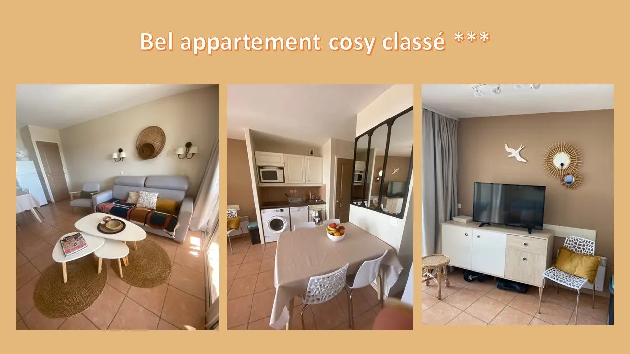 - Un séjour avec canapé convertible "rapido" couchage en 140 sur matelas Dunlopillo de qualité, têtières réglables et range-couette, TV led 108 cm, table avec rallonge), un placard de rangement.