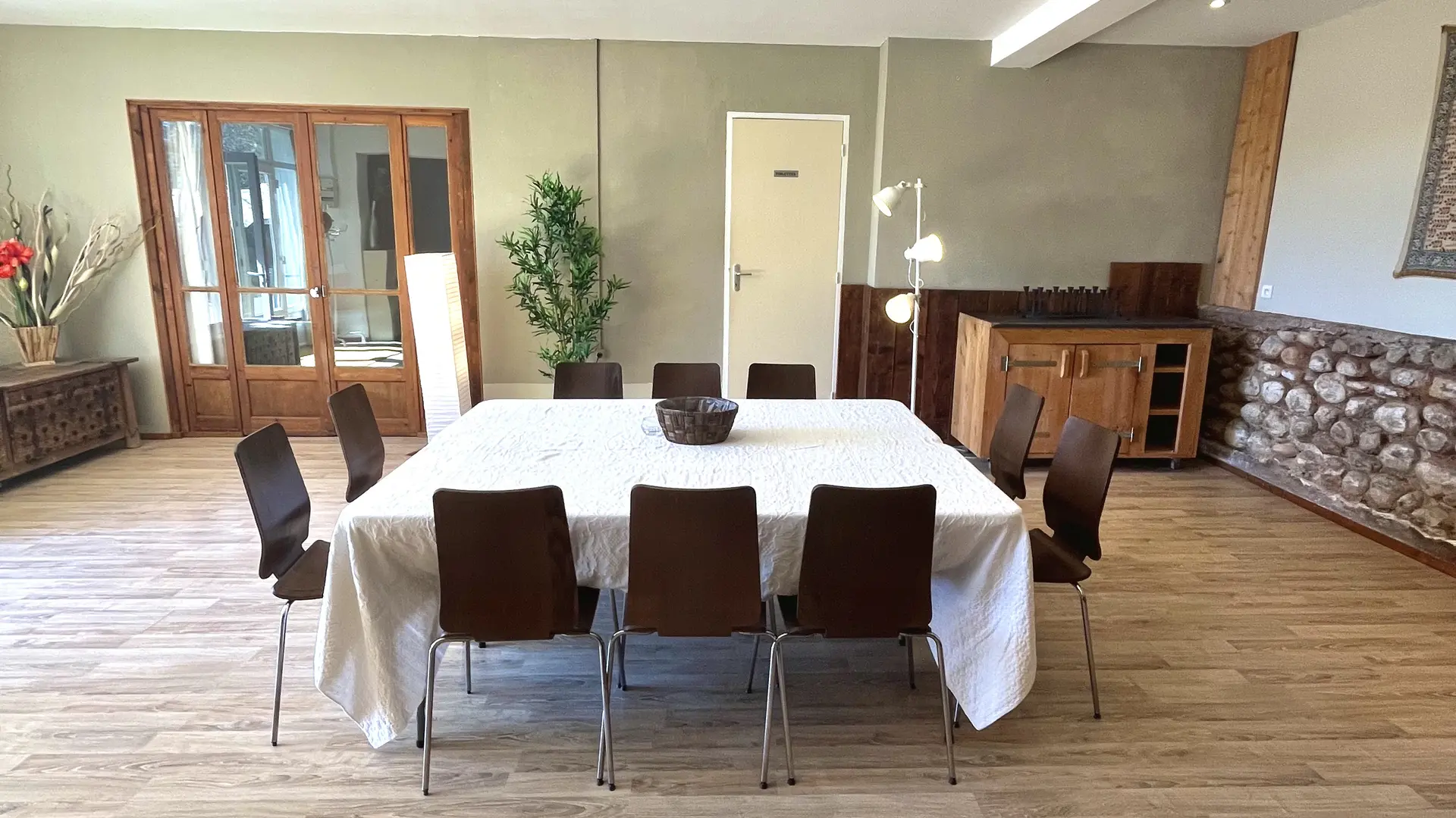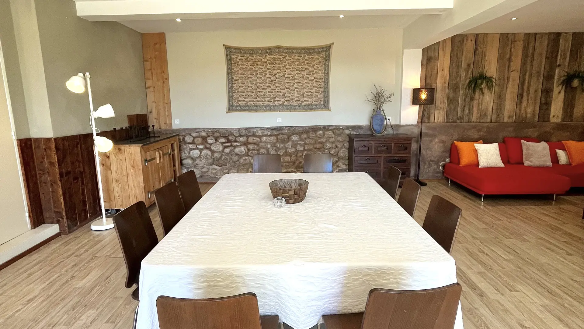 Au sein d’un ancien hameau agricole devenu le domaine La Blache, le gîte La Bergerie vous accueille pour des séjours entre amis ou en famille. Avec une superficie de 110 m², il invite à des moments conviviaux dans sa grande salle de séjour. Idéal pour 8 personnes, il se situe au sein d’un espace naturel où vivent des poules, des chats, un chien et des chevaux. De sa cour, la vue sur le plateau du Valensole est un enchantement. Dans le souci de préserver l’environnement, il a été rénové en mettant un accent particulier sur l’isolation grâce à laquelle une agréable fraîcheur l’été et une douce chaleur l’hiver sont maintenues à l’intérieur. Situé dans le Parc régional du Verdon, le gîte La Bergerie est idéal pour s'immerger une nature authentique.