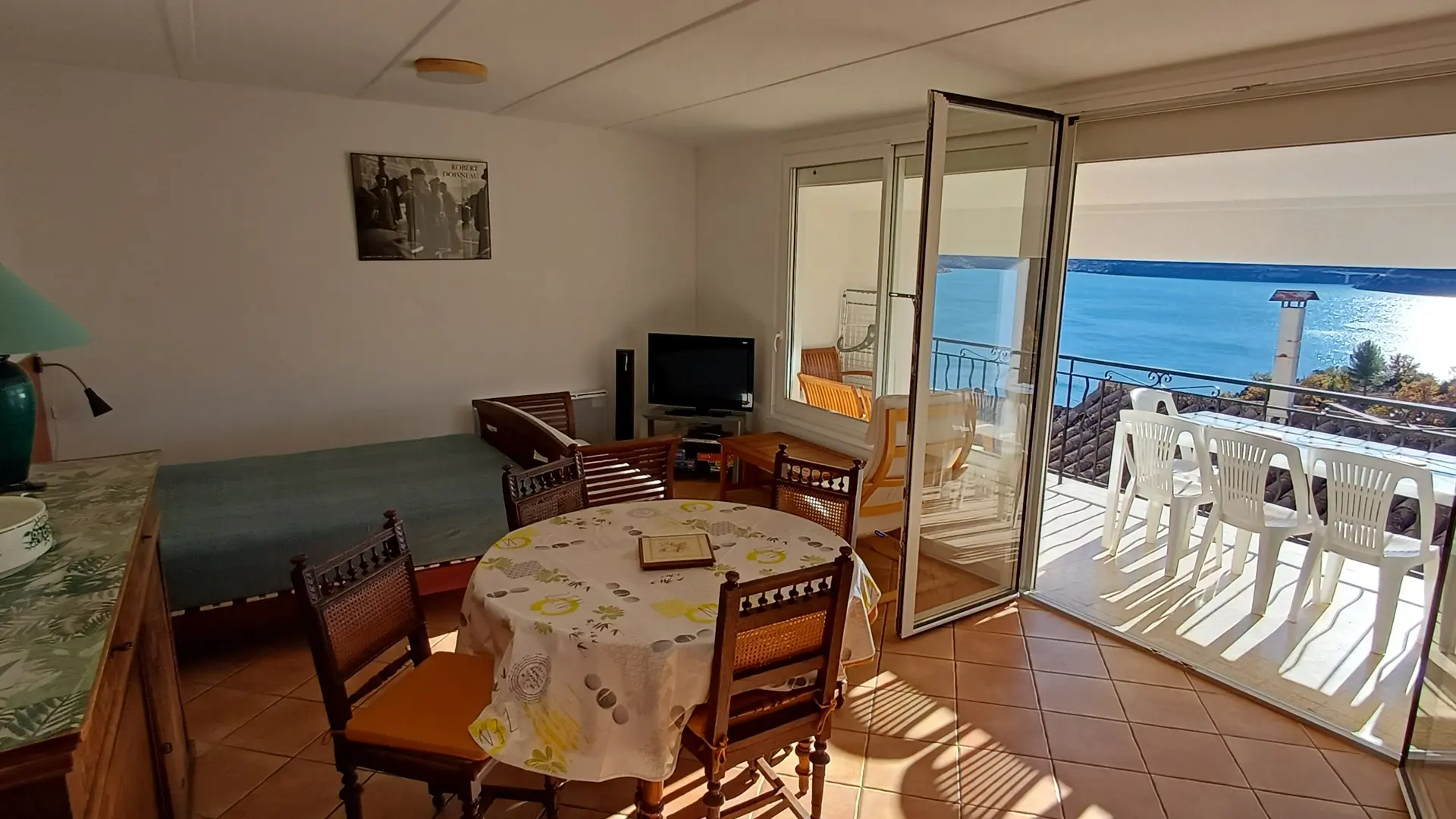 Appartement au 1er étage au calme avec une terrasse couverte et une magnifique vue sur le lac. Location idéale pour 5 personnes, avec 1 lit en 140cm et 1 lit en 90cm dans une chambre, ainsi qu'un lit en 140cm dans l'espace salon salle à manger. L'appartement dispose égale d'une cuisine indépendante, d'une salle de bain/douche et WC. Une buanderie avec lave-linge est commune avec l'appartement en rez-de-chaussée. Le lac et les commerces sont à proximité. Vous pouvez vous y rendre à pied. Un local à vélo/moto est également disponible sur demande.