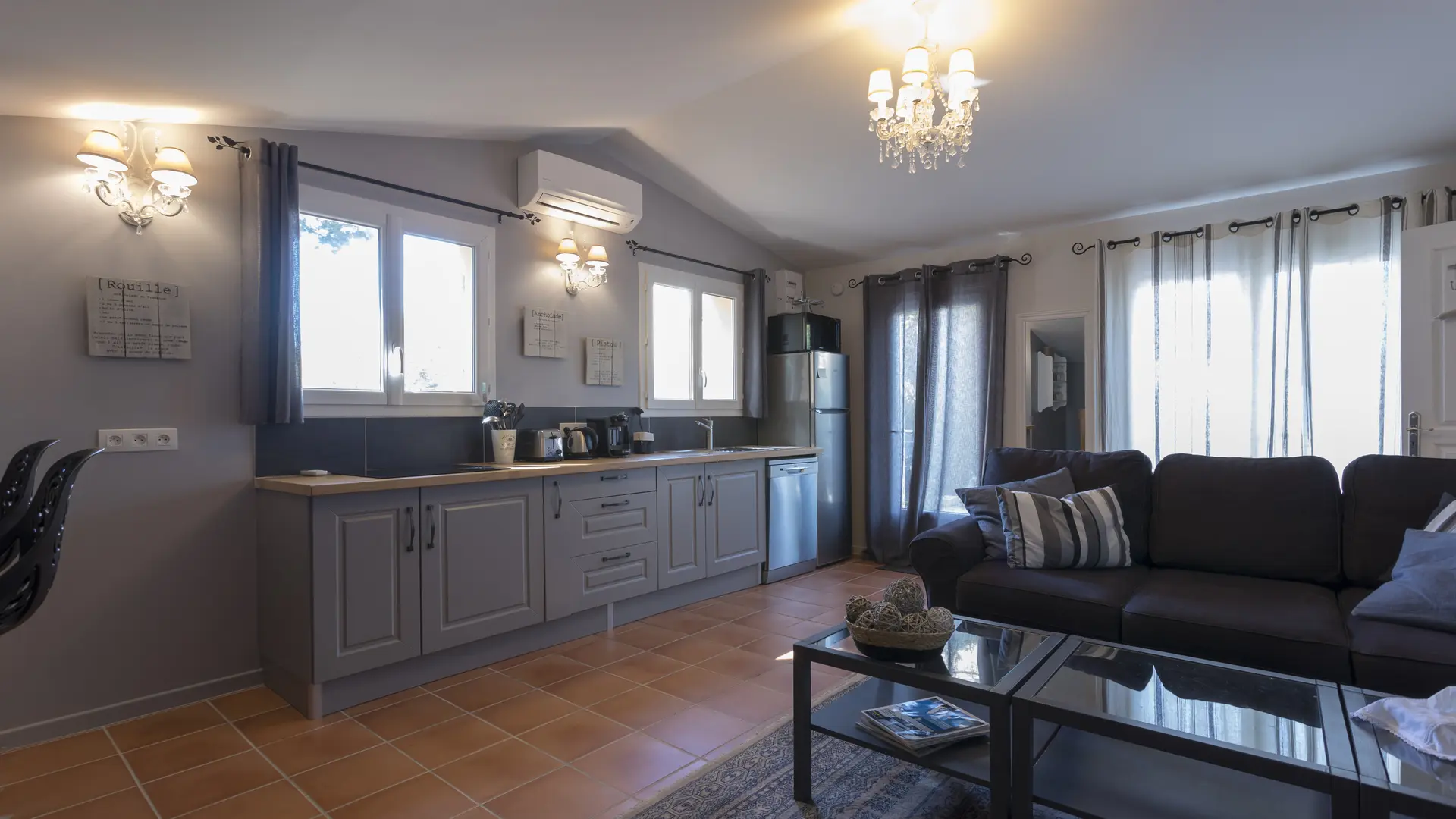 Le petit Bouchou possède un coin salon, idéal pour se détendre après un journée bien remplie. Bénéficiant d'une cuisine entièrement équipé, vous pourrez également préparer vos repas ou profiter du barbecue à gaz situé sur la terrasse de 35 m². La grande salle de bains privative est pourvue d'un sèche-cheveux et d'articles de toilette gratuits.