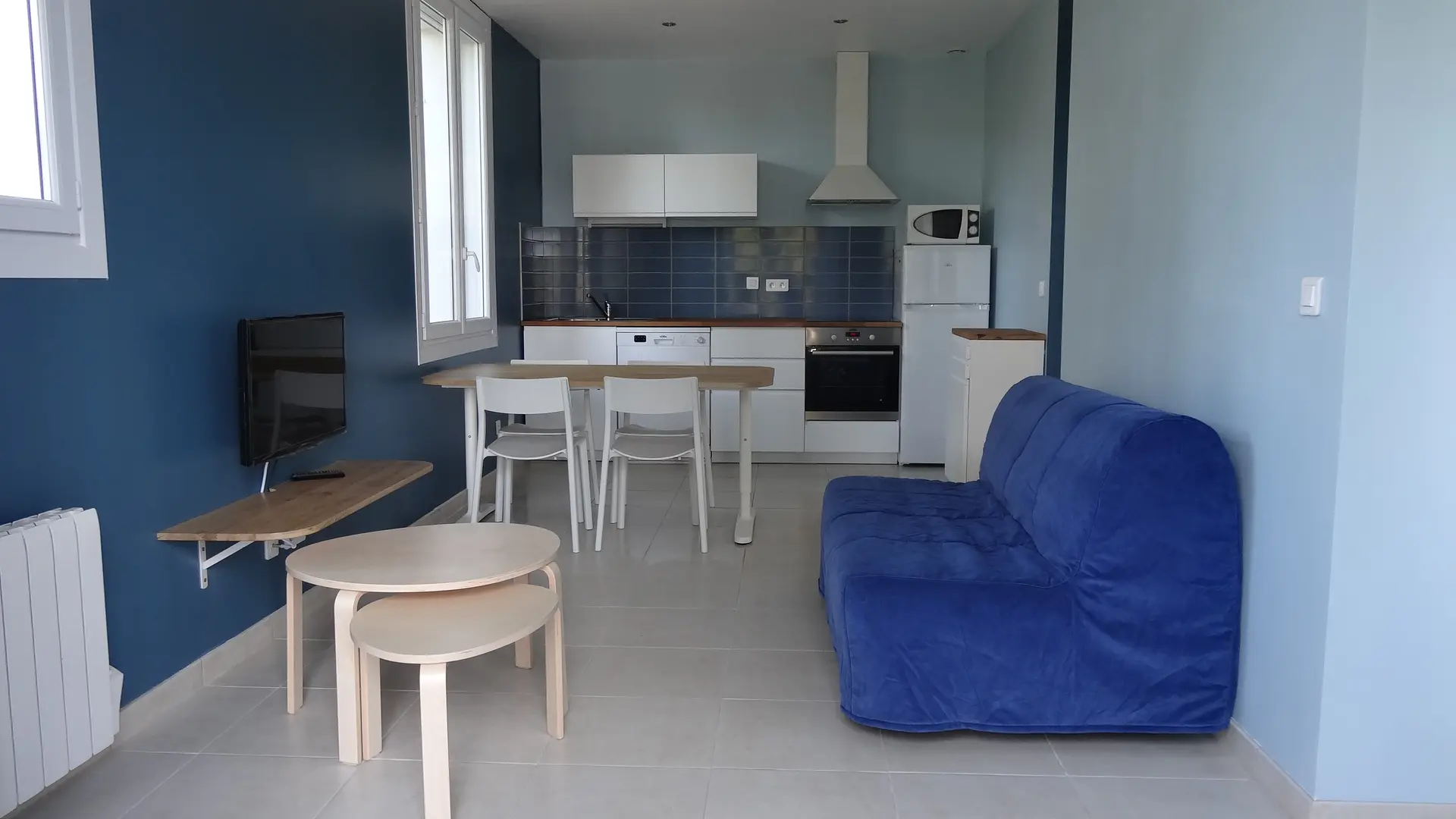 L'appartement est totalement rénové, cuisine équipée et mobilier entièrement neufs. L'appartement est frais en été, une terrasse (vue mer) avec salon de jardin.