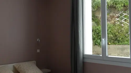 Climatisation. Possibilité de prêt d'un lit d'enfant. Grand placard dans la chambre. Grande pièce de séjour avec partie cuisine et chambrette fermée par deux portes coulissantes. Partie salon avec canapé et téléviseur. Coin bureau. Salle d'eau. Abri voiture dans le jardin