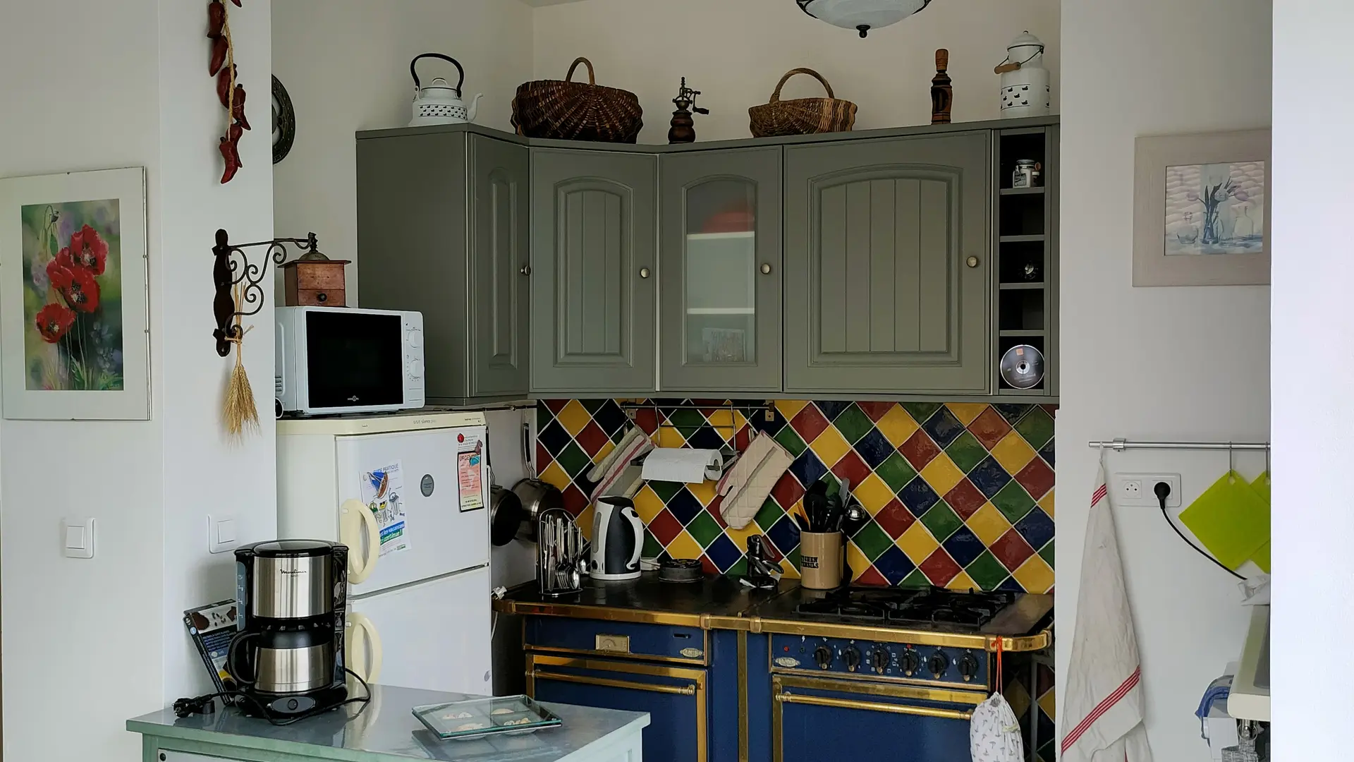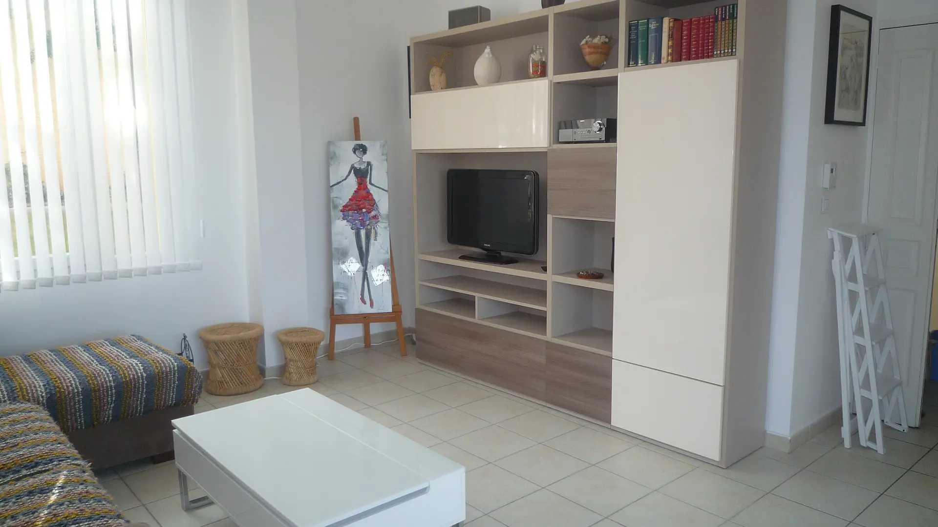 Appartement avec 1 chambre pour deux personnes avec télévision, grand séjour avec un BZ pour deux personnes avec télévision, une cuisine, un coin repas, salle de douche, WC séparé. Bien équipé avec frigidaire, gazinière, four, micro ondes, lave vaisselle, lave linge, grille pain, deux cafetières, boulloire.