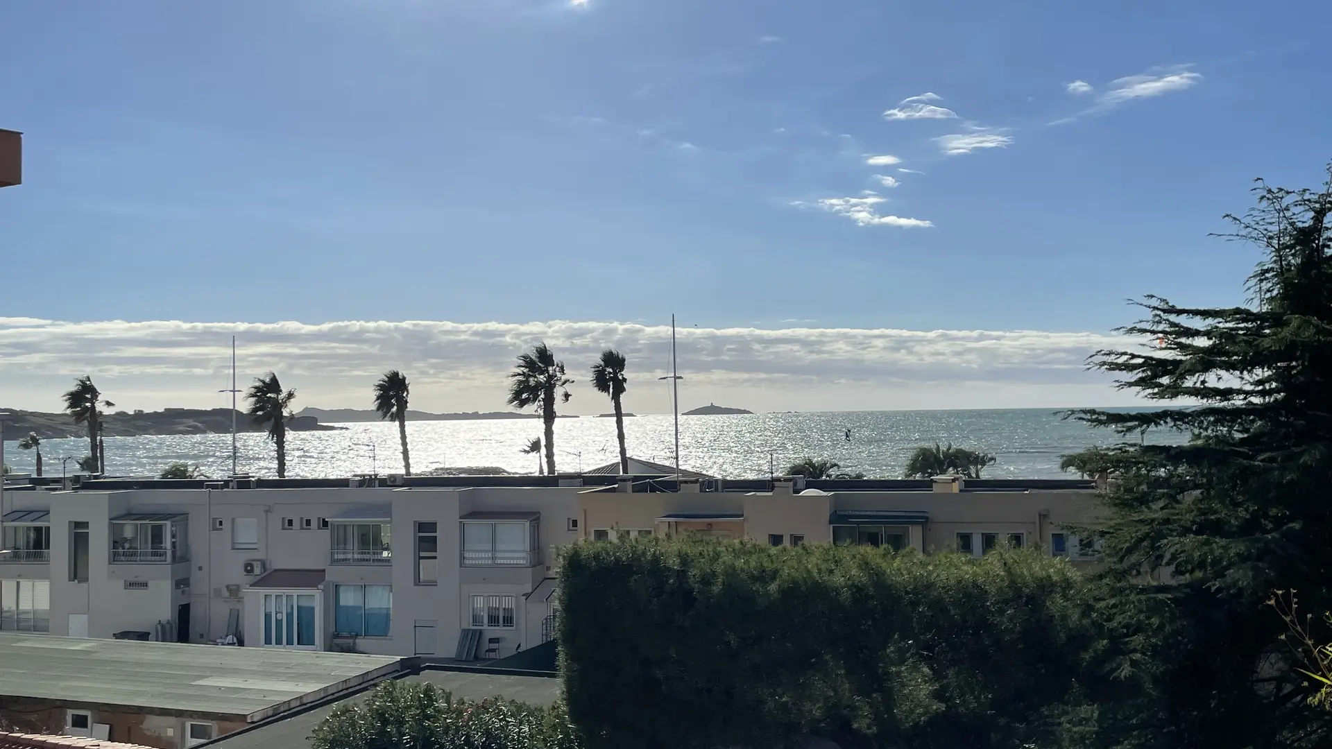 - d’un salon équipé d’un canapé, balcon vue mer