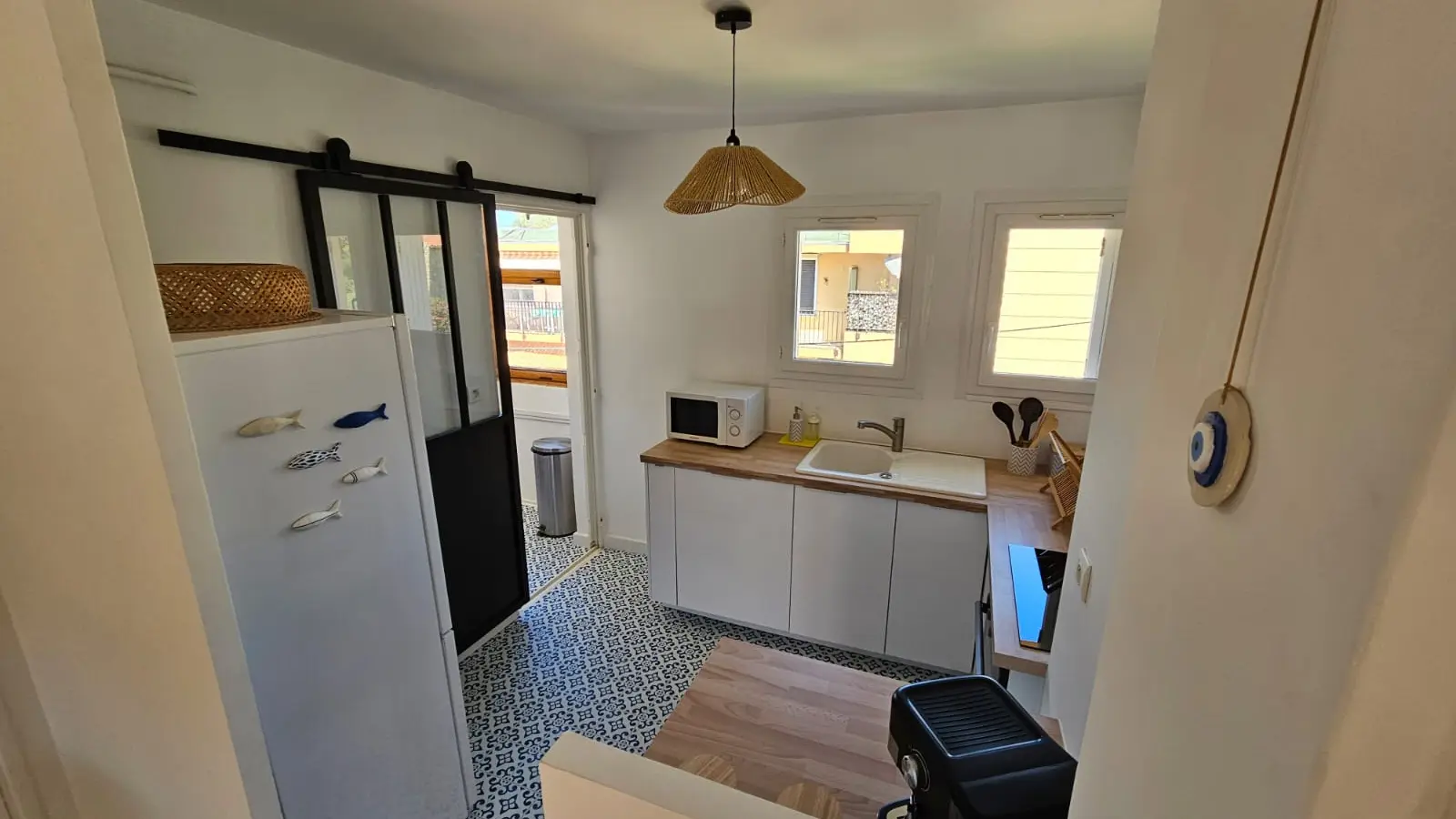 Équipements : Réfrigérateur-congélateur, lave-vaisselle, four, micro-ondes, plaque induction, cafetière expresso, bouilloire, grille-pain, appareil à raclette/grillades, lave-linge, sèche-cheveux, télévision, climatisation, chauffage.
