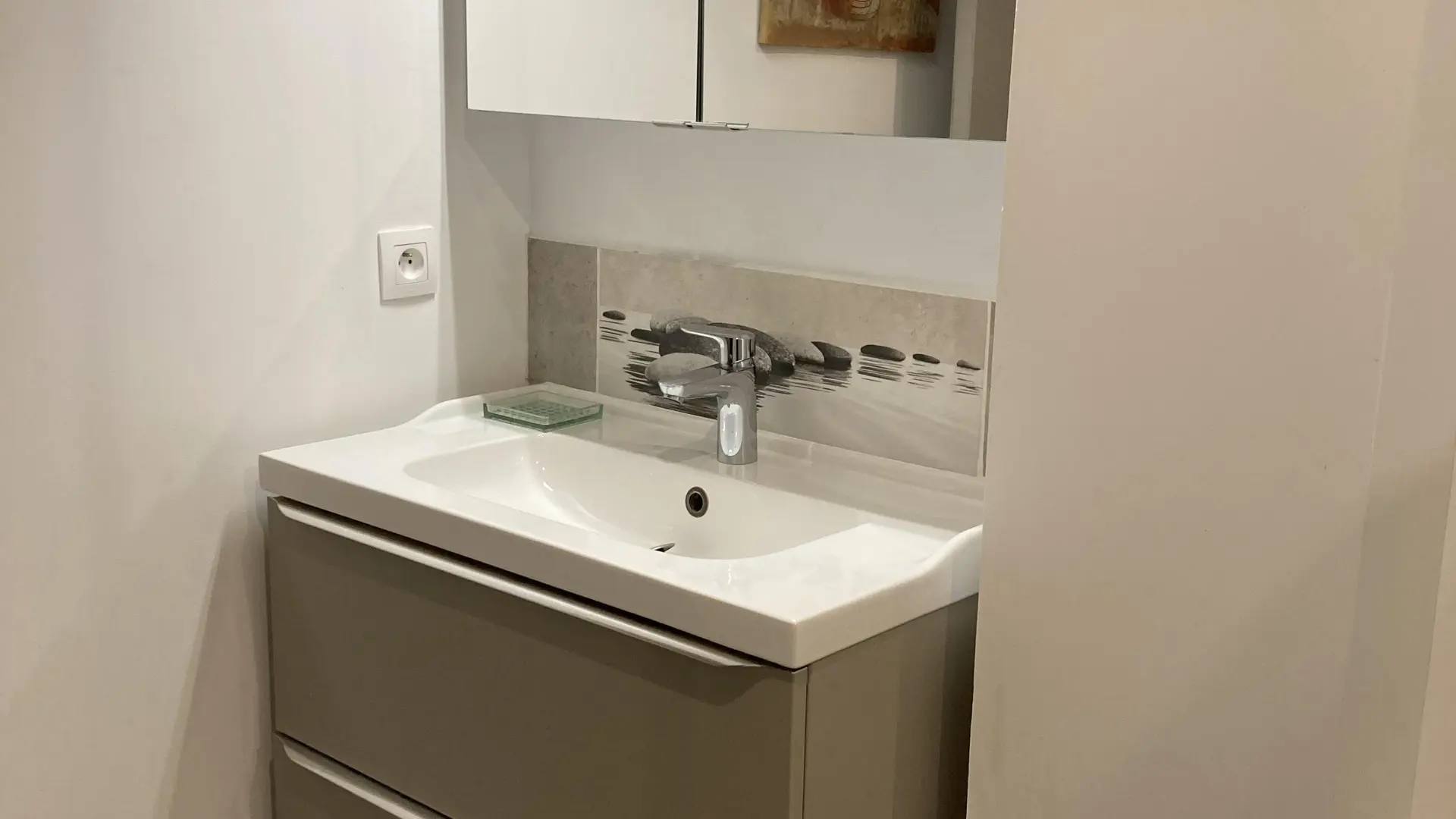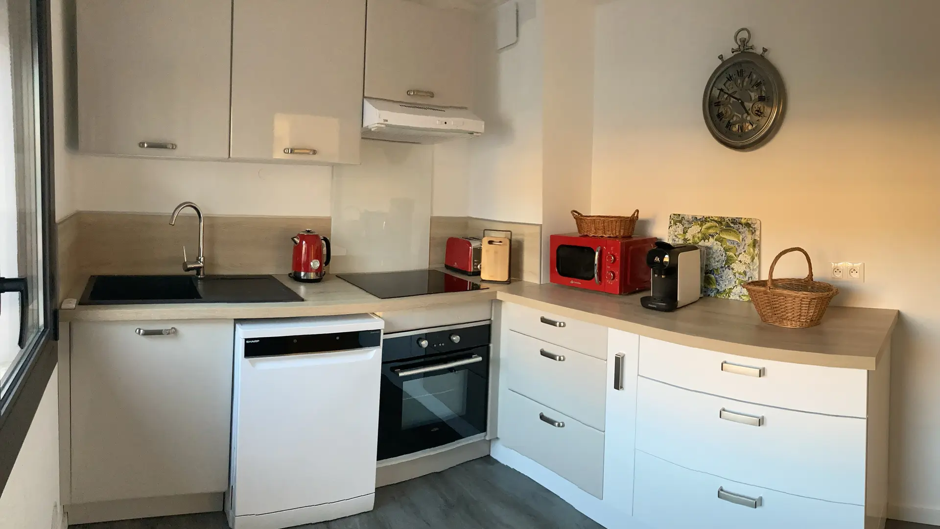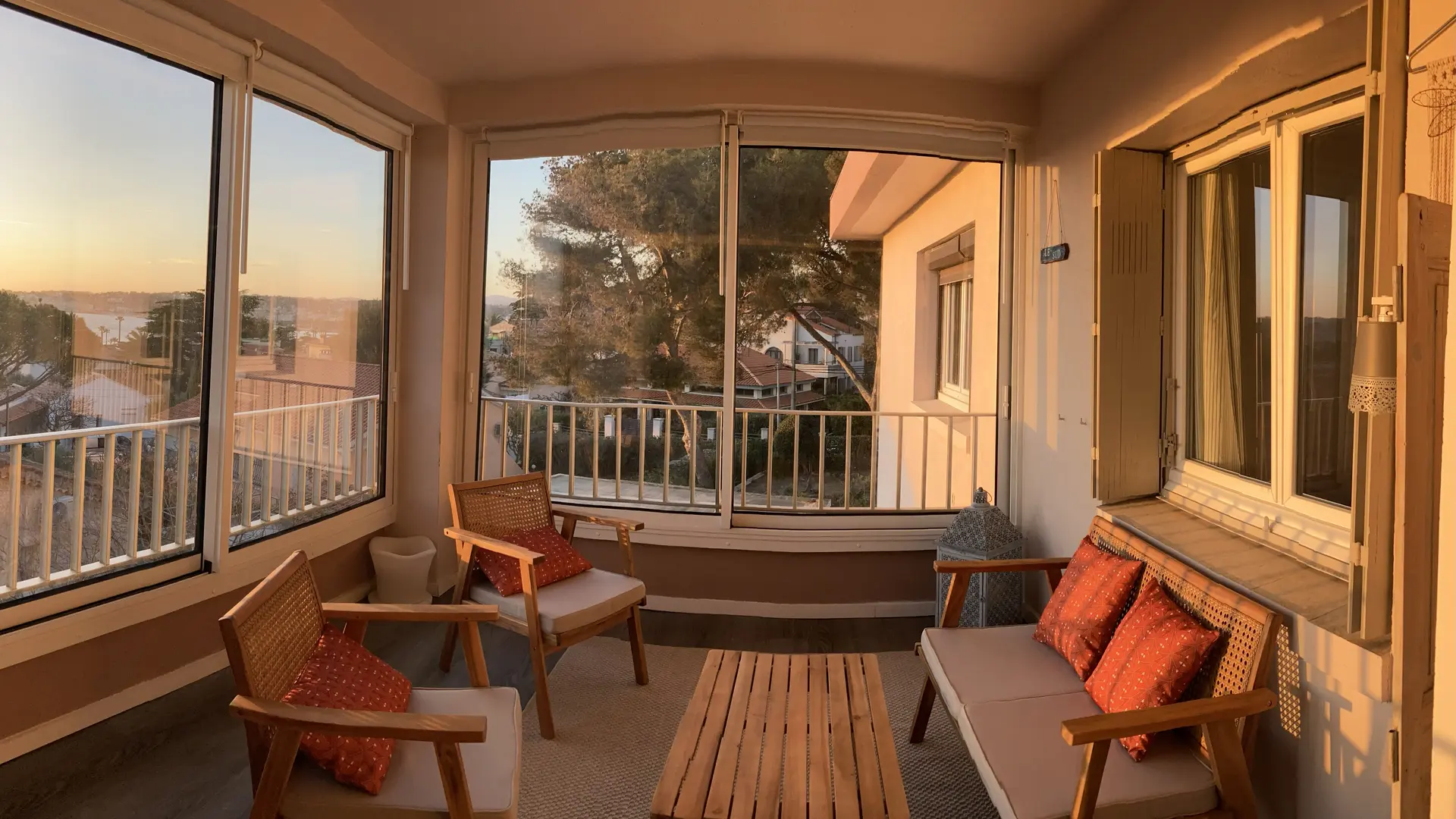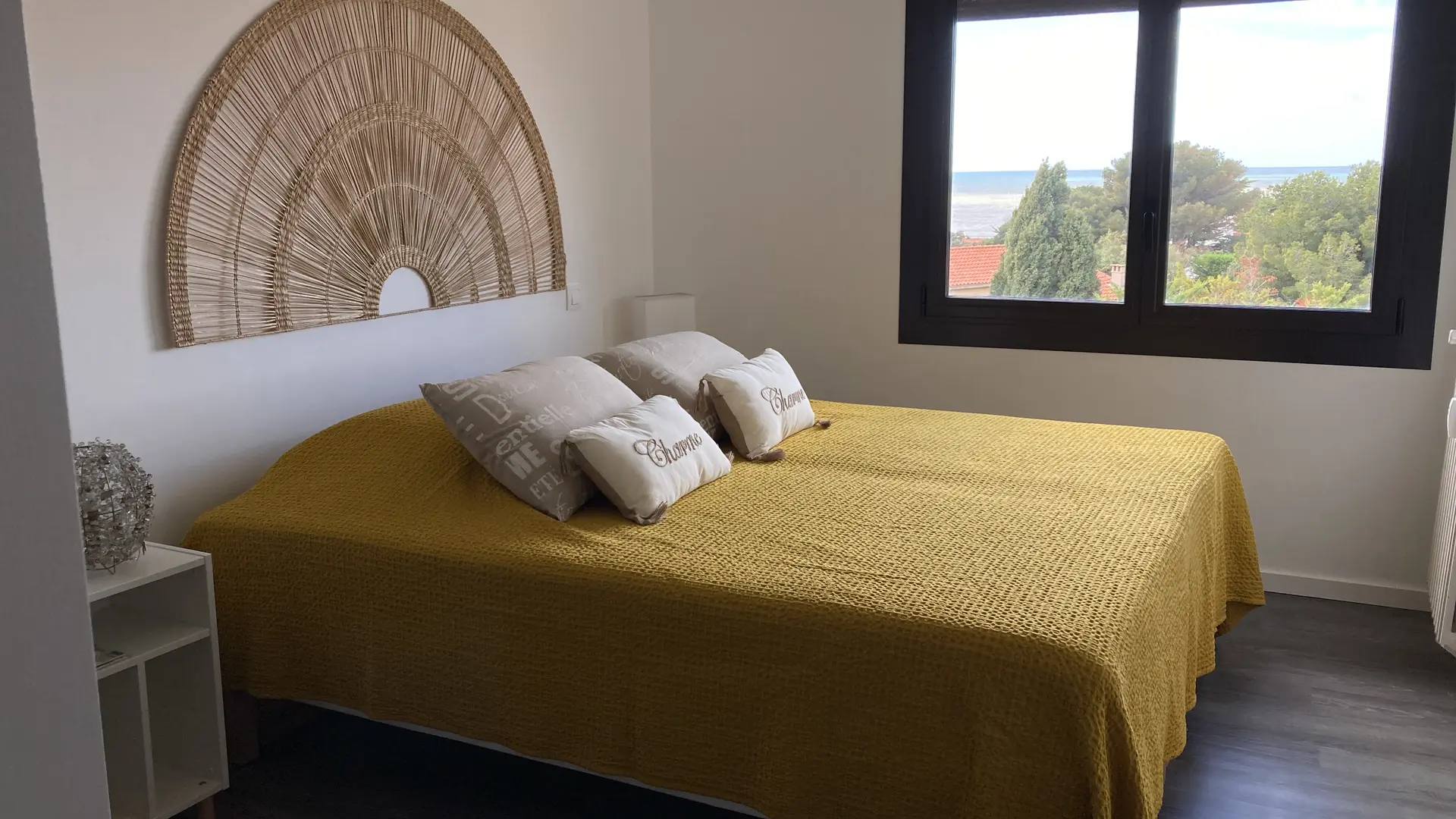 Appartement refait à neuf, moderne, de 3 pieces avec une vue mer que vous soyez dans la chambre , le salon ou la terrasse fermée
