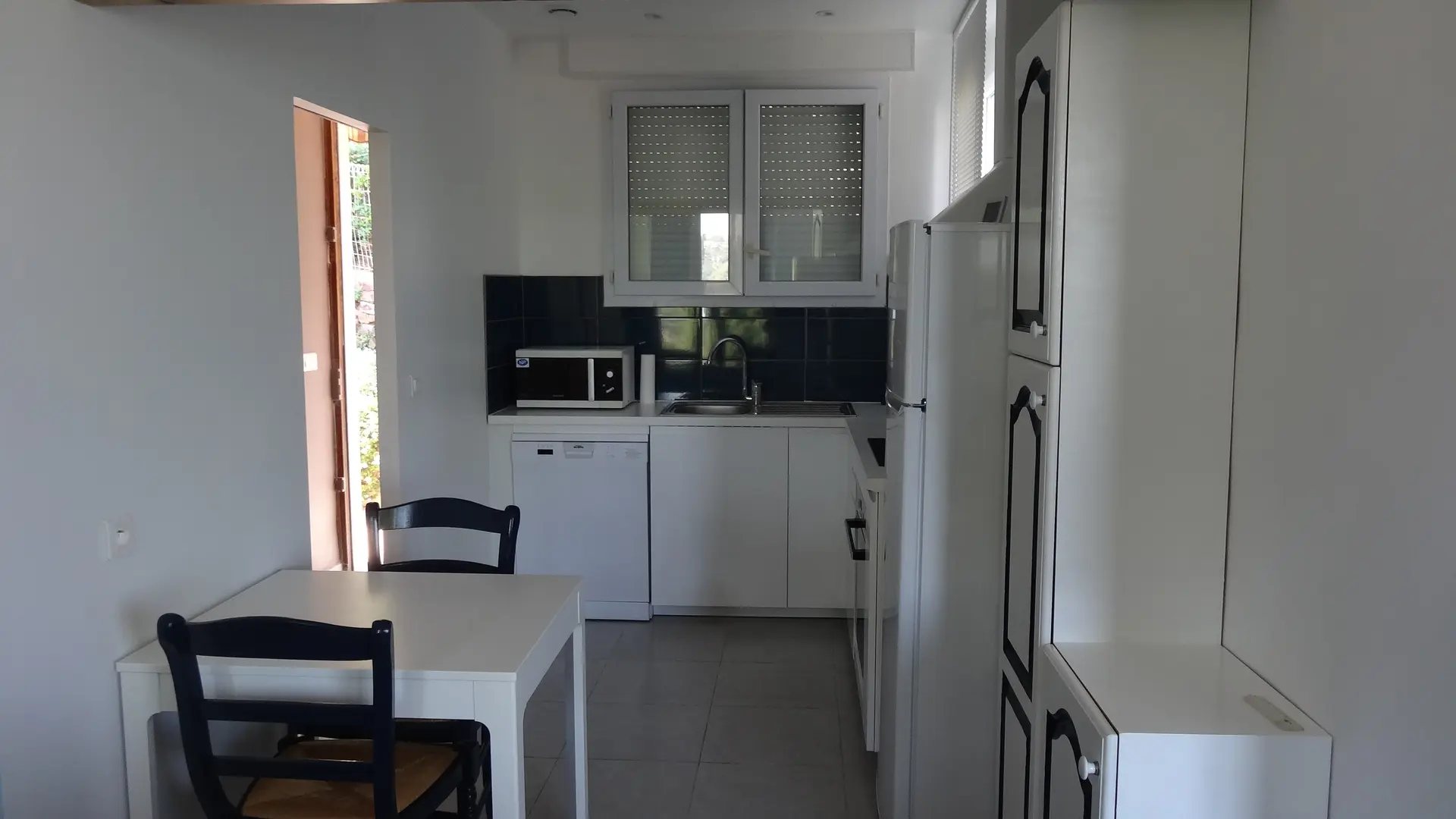 L'appartement est totalement rénové, cuisine équipée (lave-vaisselle, four pyrolyse, micro-ondes, plaque à induction, réfrigérateur-congélateur) ; une terrasse avec salon de jardin. Possibilité de prêt d'un lit d'enfant. Grand placard dans les chambres. Grande pièce séjour salle à manger avec cuisine ouverte. Canapé convertible : téléviseur. Wi-Fi. Salle d'eau (lave-linge). Climatiseur