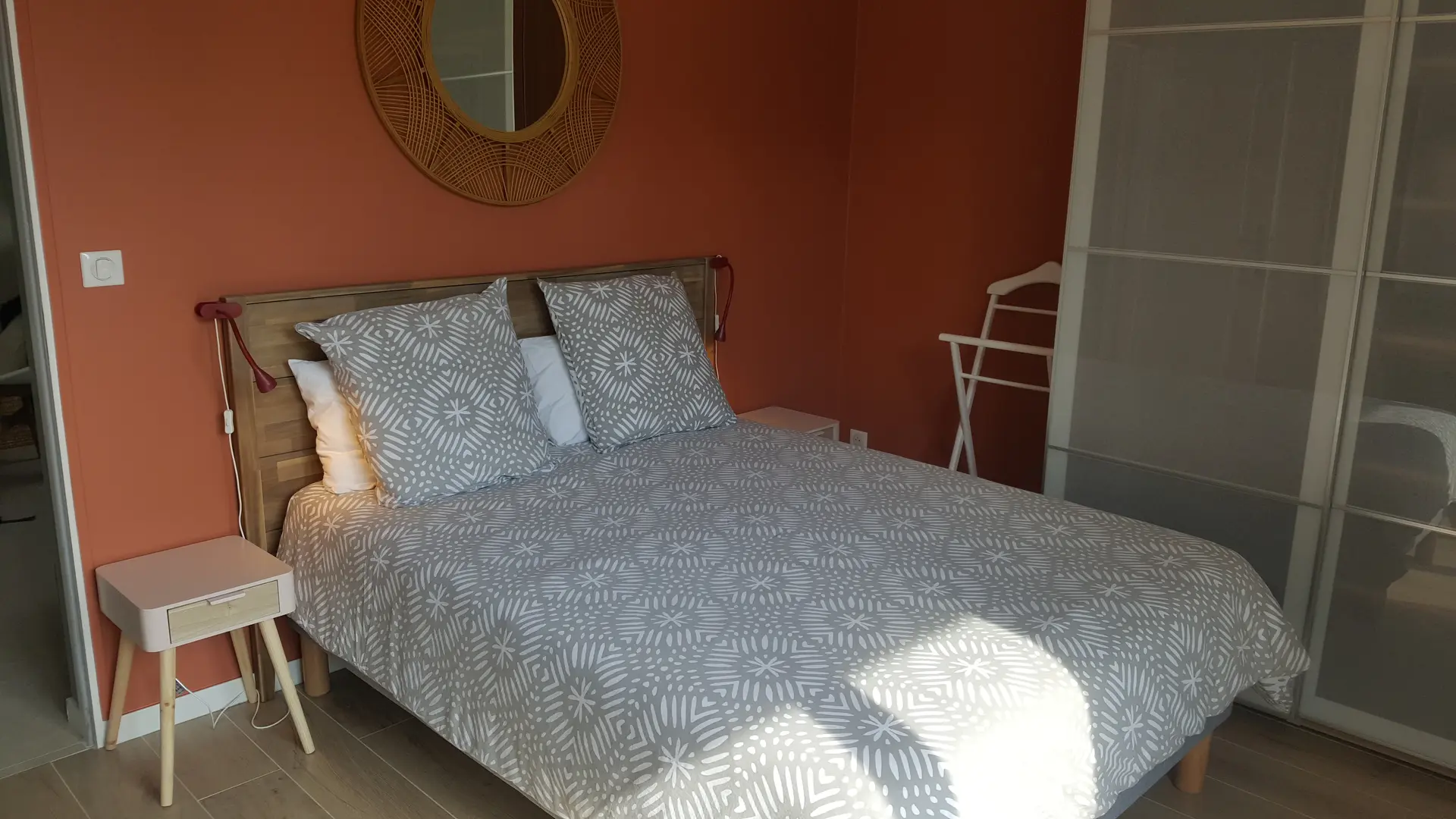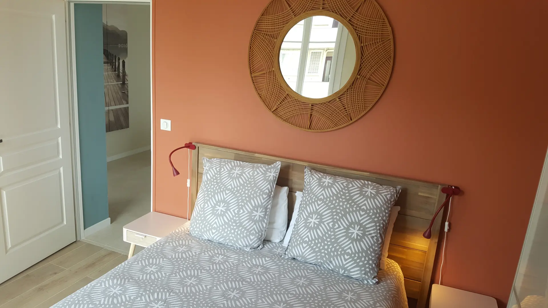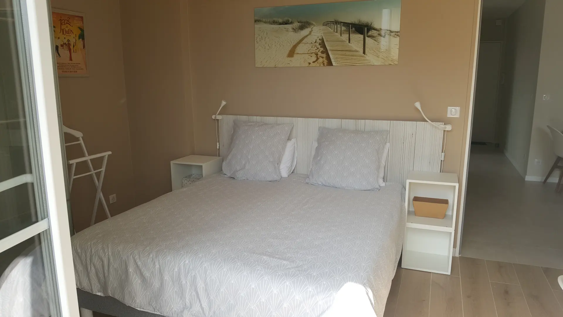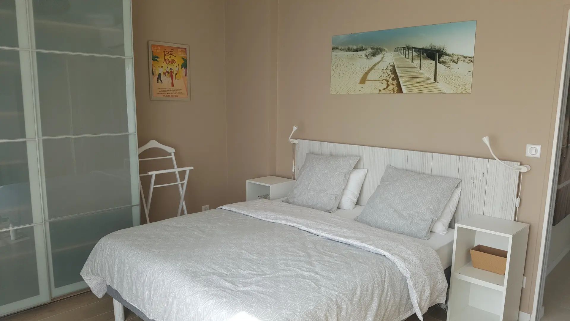 Les 2 chambres de 14m² et 13m² disposent respectivement d’un lit de 160/200 (ou 2 lits séparés 80/200) et de 140/200 (literie neuve), d’un bureau, d’un chevet + liseuse par personne, et d’une grande armoire/dressing.