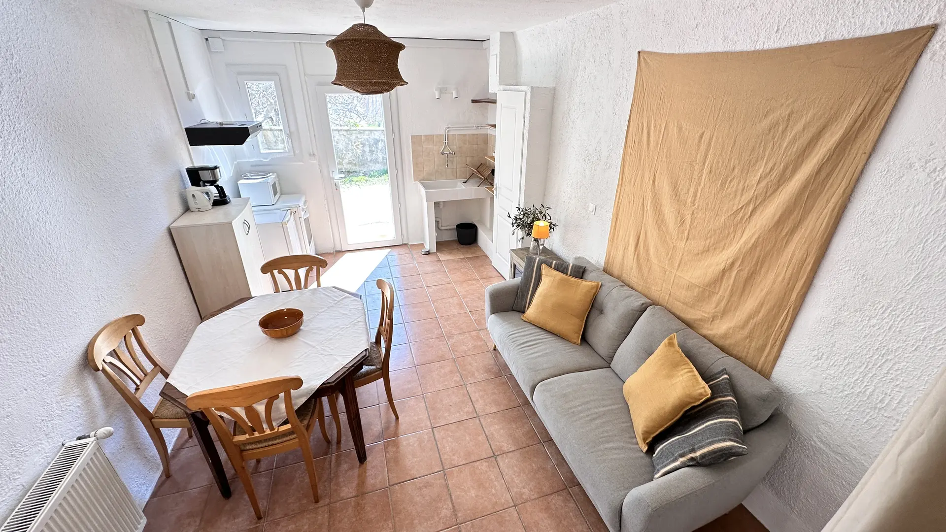 Une voûte dans un mur de pierre chaulé servant d’alcôve, voici l’origine du nom de ce gîte parmi les 7 que compte le domaine La Blache. Dans cet ancien hameau agricole du plateau du Valensol transformé en lieu d’accueil, le gîte la Voûte donne sur une cour au sein d’un magnifique espace naturel où l’on trouve des cultures et des arbres, mais aussi des chats, un chien, des poules et des chevaux. Dans le souci de préserver l’environnement, chaque gîte a été rénové en mettant un accent particulier sur l’isolation afin de maintenir une agréable fraîcheur l’été et une douce chaleur l’hiver. Situé dans le Parc régional du Verdon, le gîte La Voûte est idéal pour modifier son rythme de vie en s'immergeant dans des espaces naturels préservés.