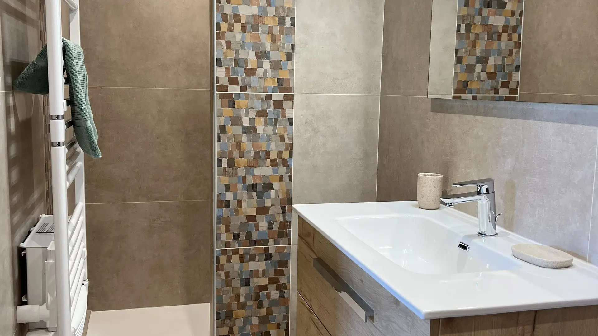 Appartement composé d'un espace nuit. Une cuisine séjour - salle d'eau avec douche - WC séparé.