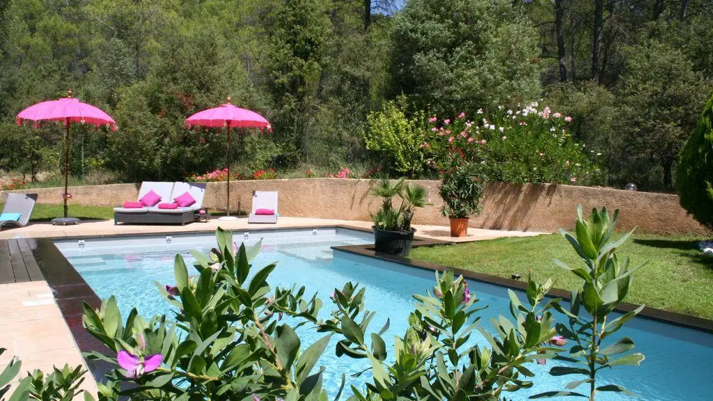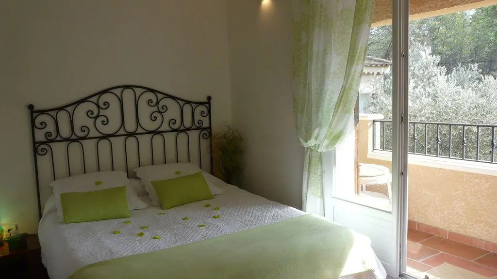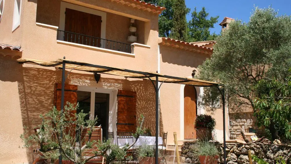 Elégant Gîte dans maison provençale en rez-de-jardin et un étage. Jardin arboré et fleuri, au milieu de la pinède provençale. Situé au coeur des collines provençales, au calme absolu ! Vue sur les vignes, le verger et la campagne environnante.