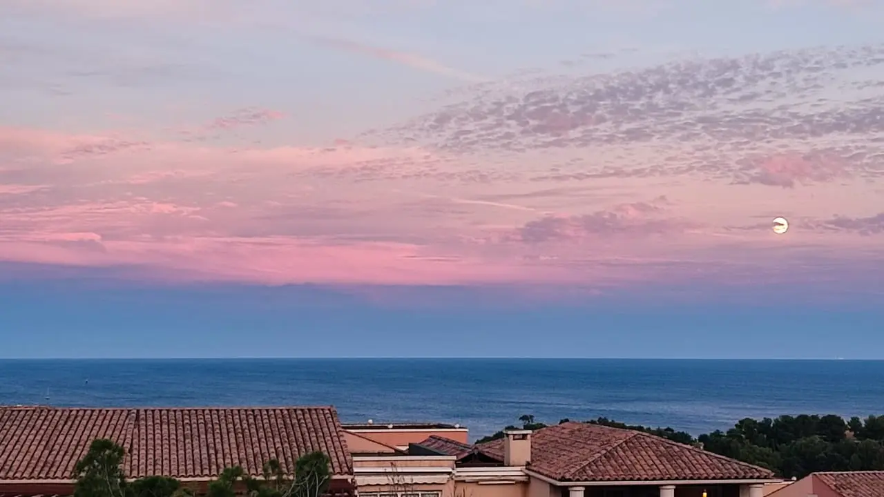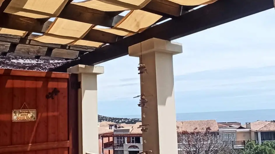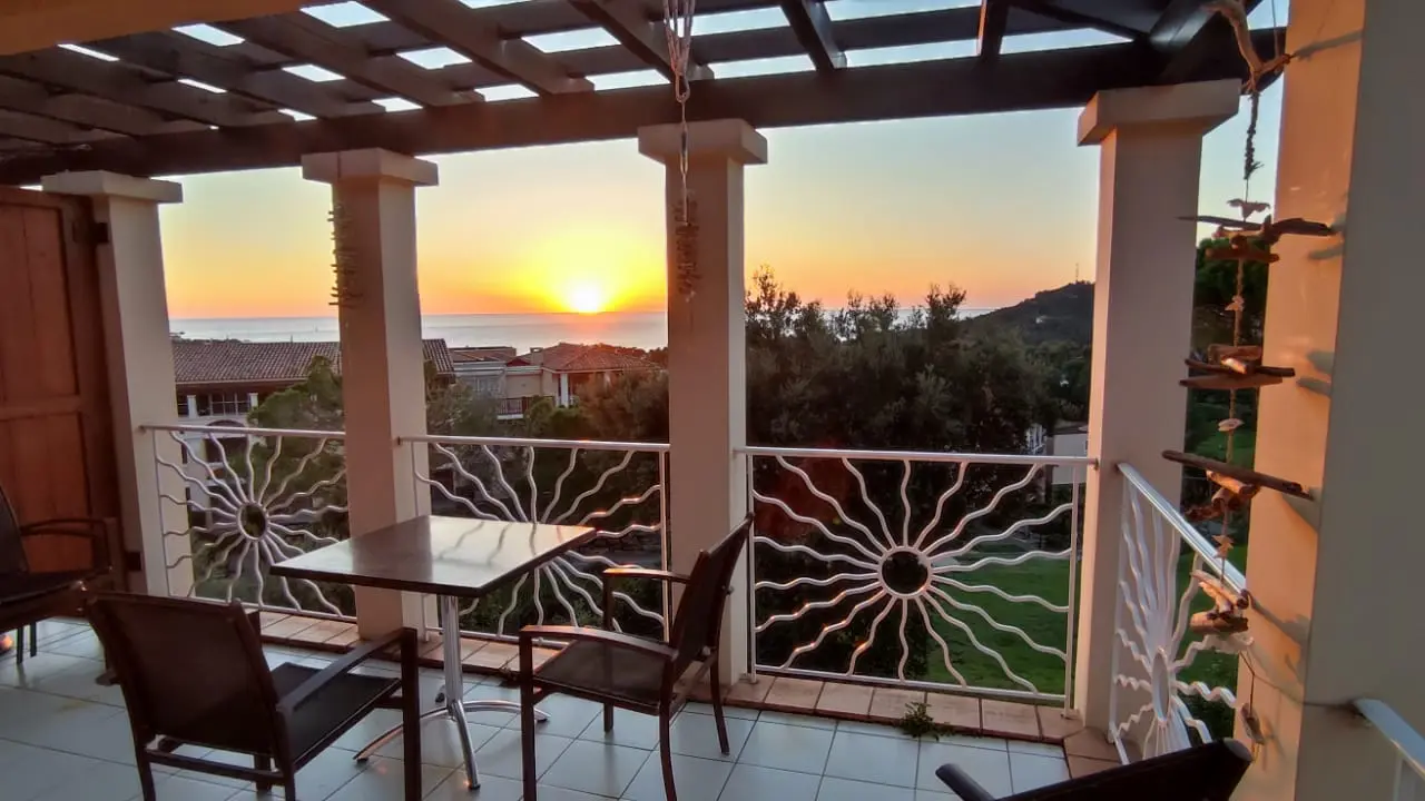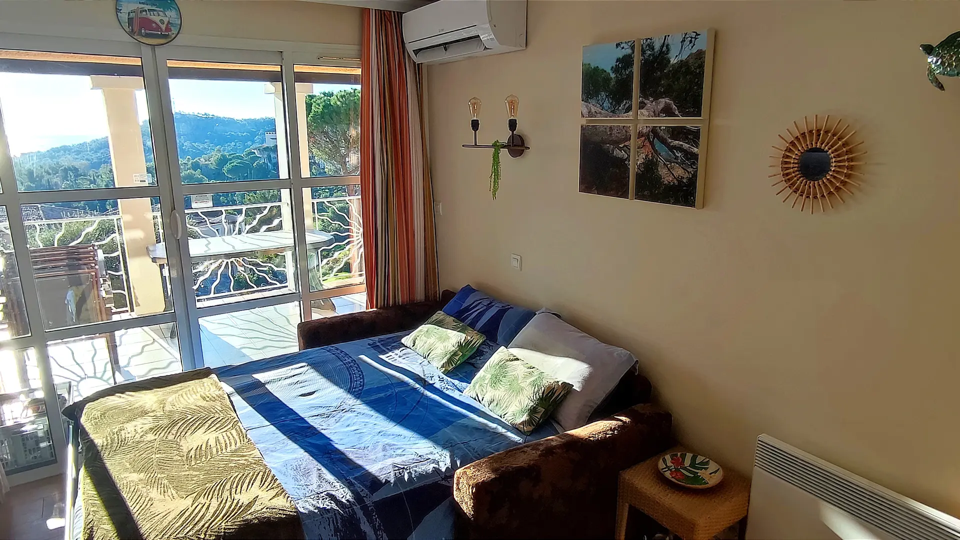 Une vue merveilleuse depuis le hamac chaise sur sa grande terrasse de 16 M2, du lever au coucher du soleil, dans un quartier du village apprécié pour son calme et son domaine arboré. Chemin de randonnée à proximité.