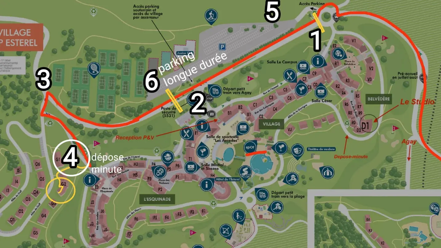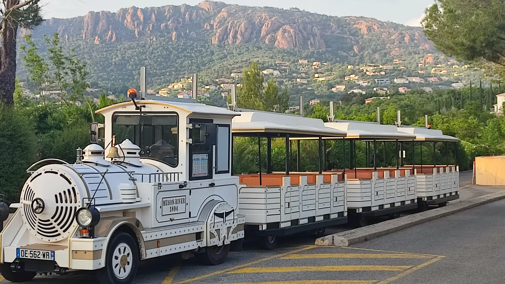 Un petit train gratuit vous emmènera à la plage du Débarquement (en face de l'île d'Or) et aux piscines du hameau, située à seulement 5 mn à pieds d'Avril au 2 novembre