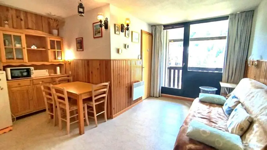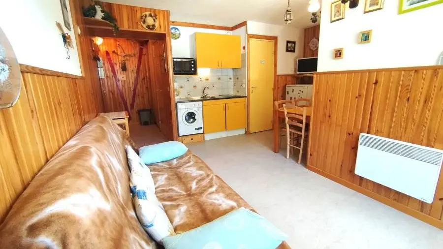 A proximité de la placette et de tout les commerces, ce Logement très bien équipé pouvant accueillir 5 personnes est composé de :