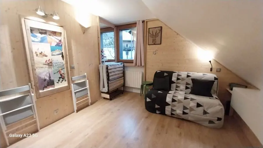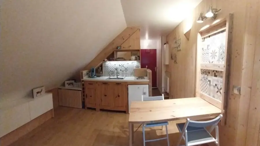 A proximité de la placette et de tout les commerces, ce studio très bien équipé pouvant accueillir 3 personnes est composé de :