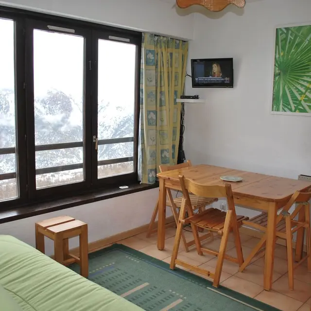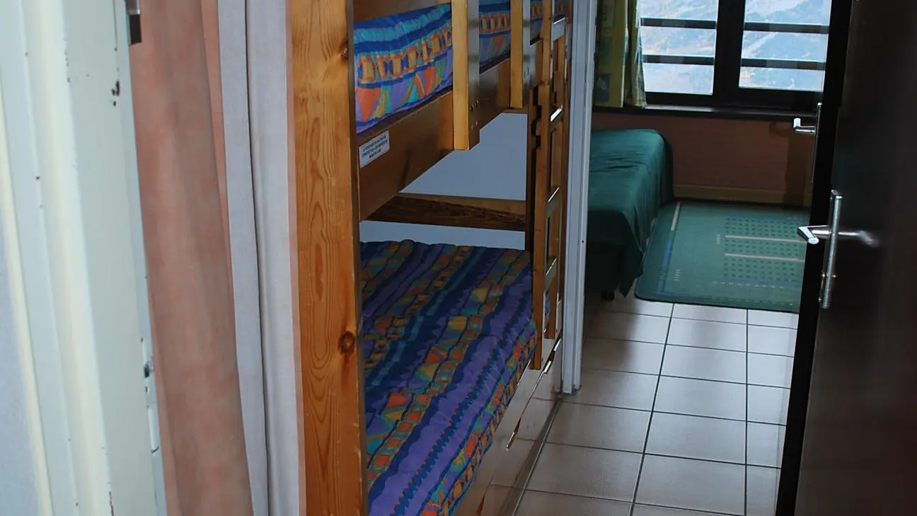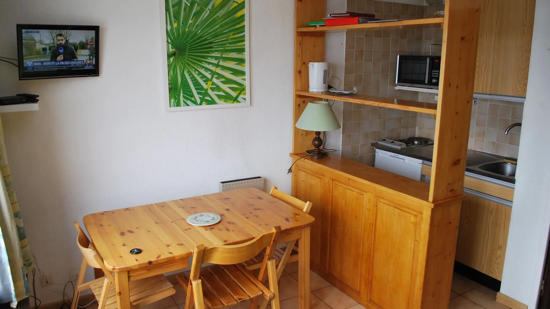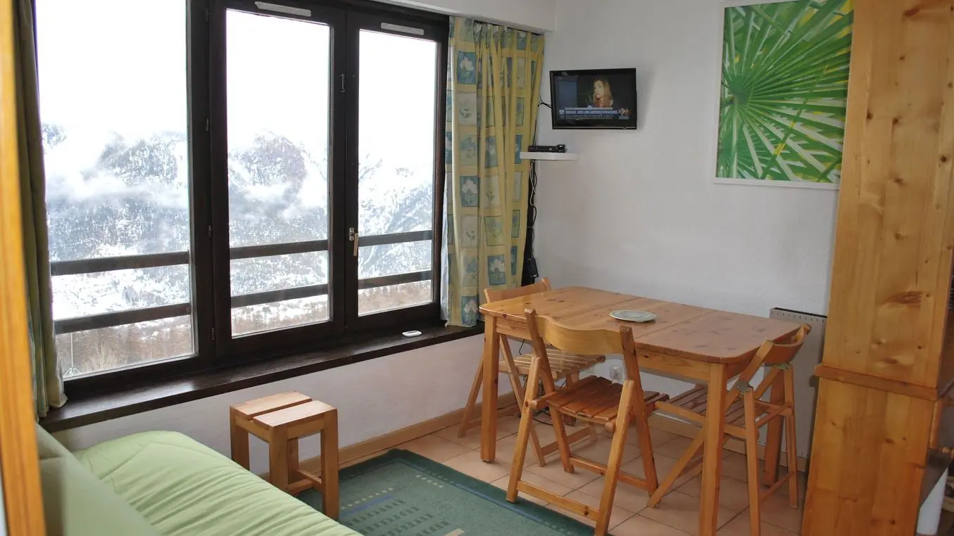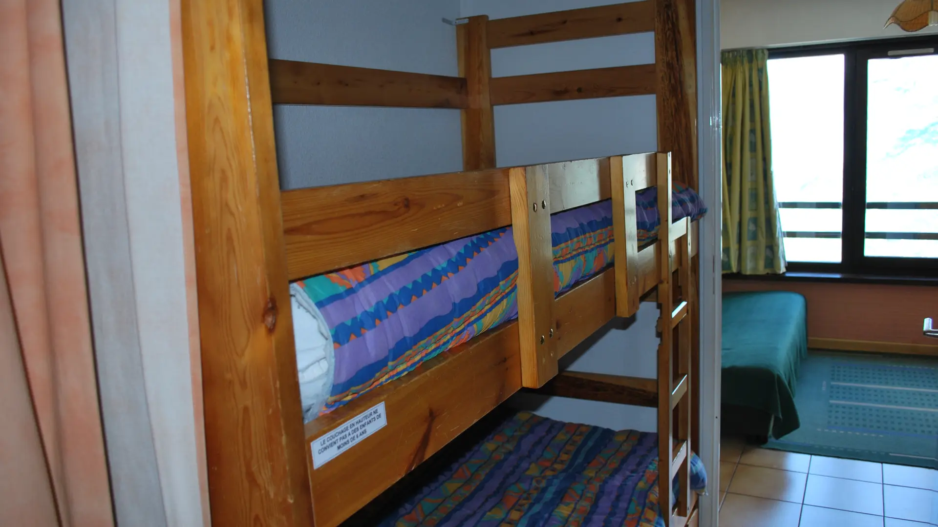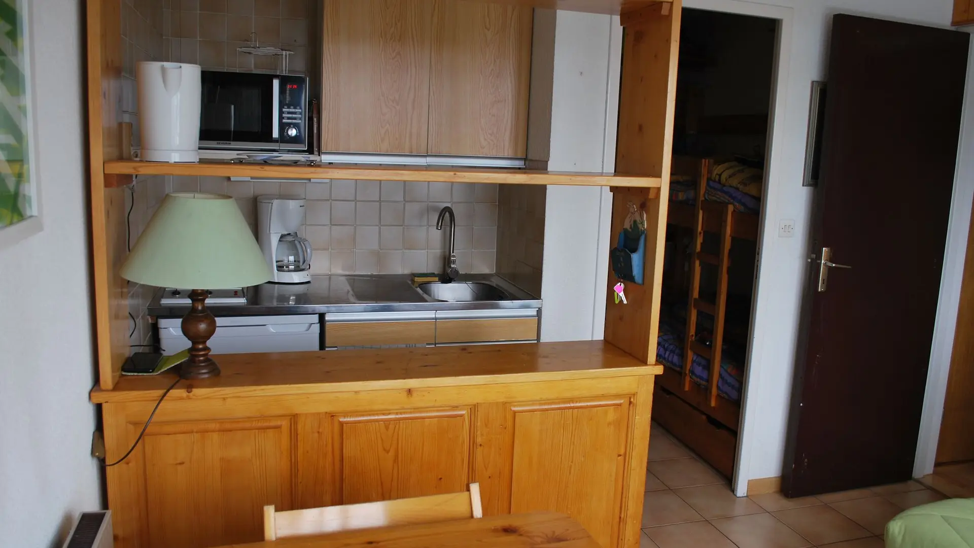 Petit deux pièces meublé et équipé pour 4 personnes, comprenant dans l'entrée, un coin montagne avec deux lits superposés et une salle de bain avec wc.