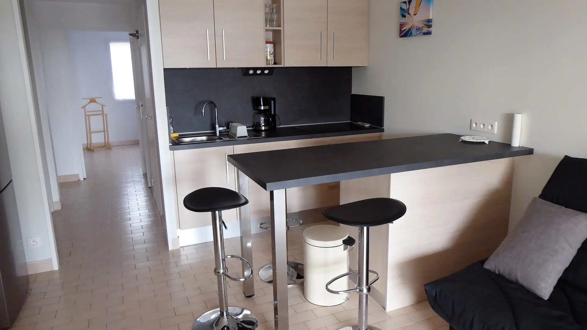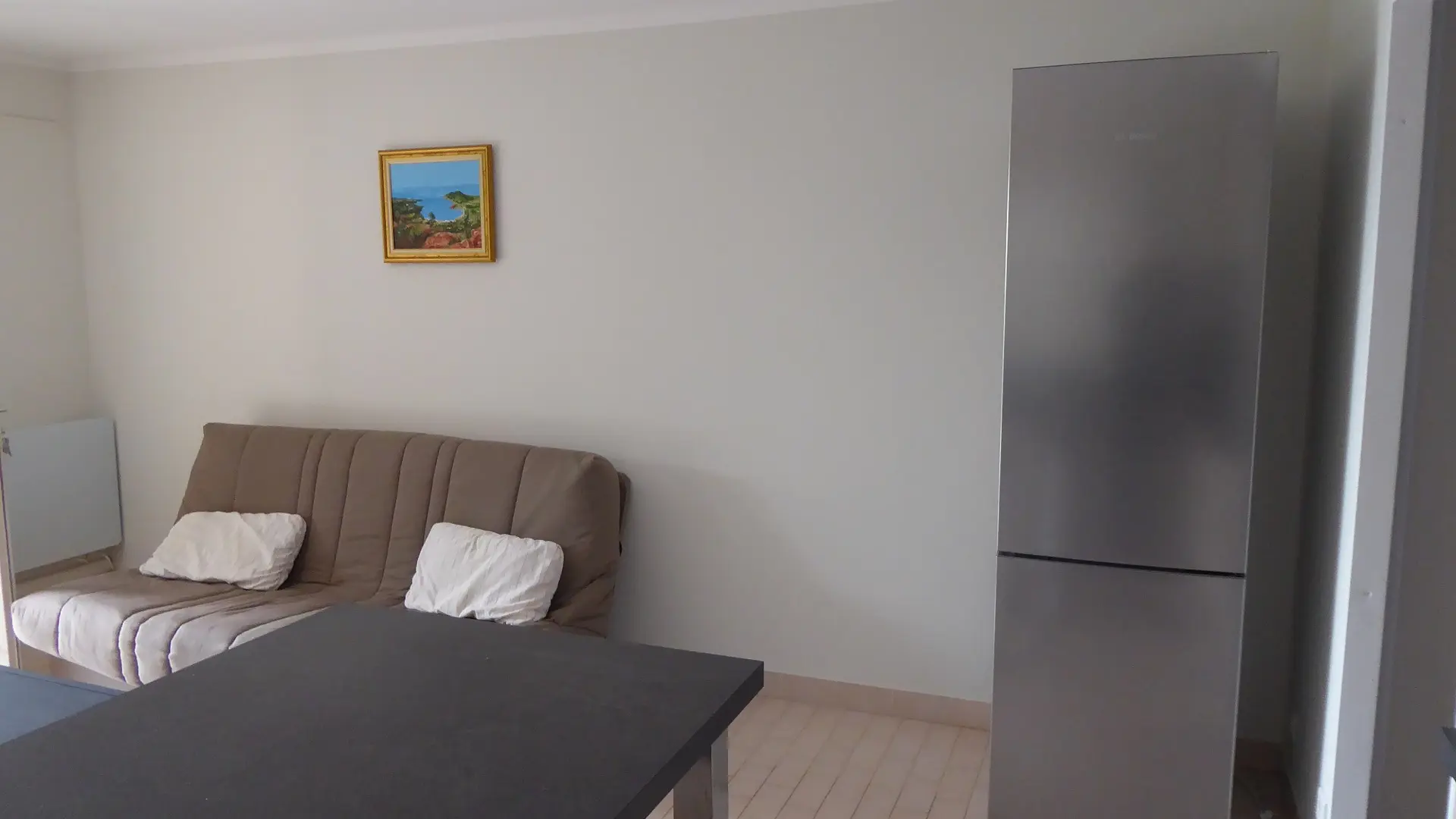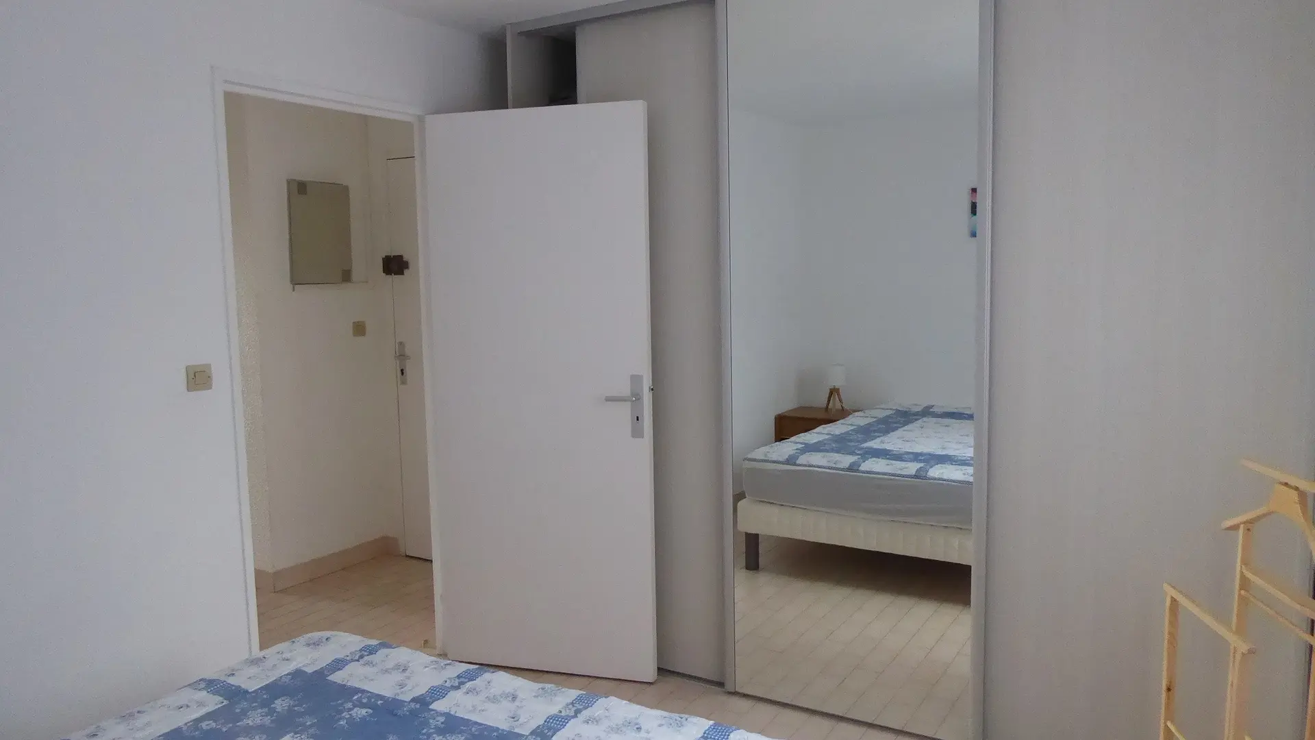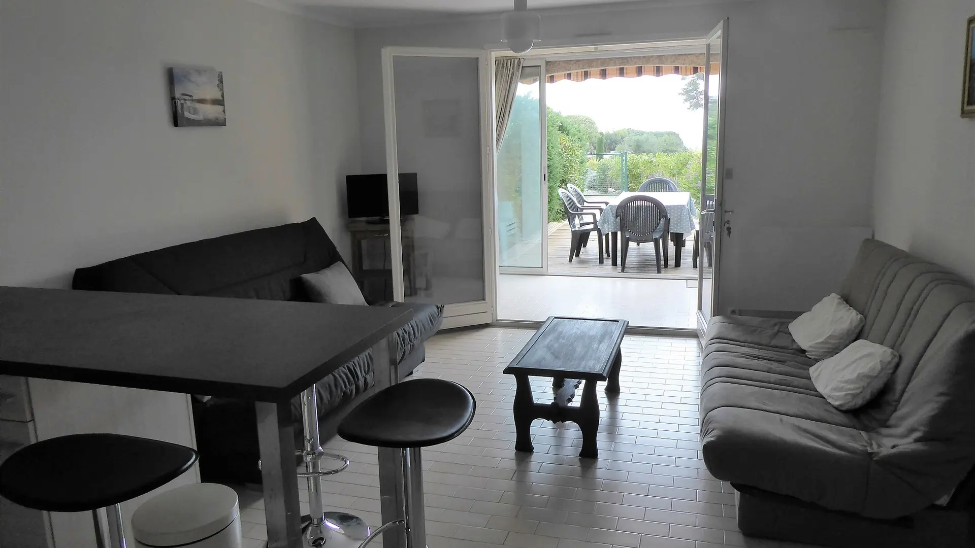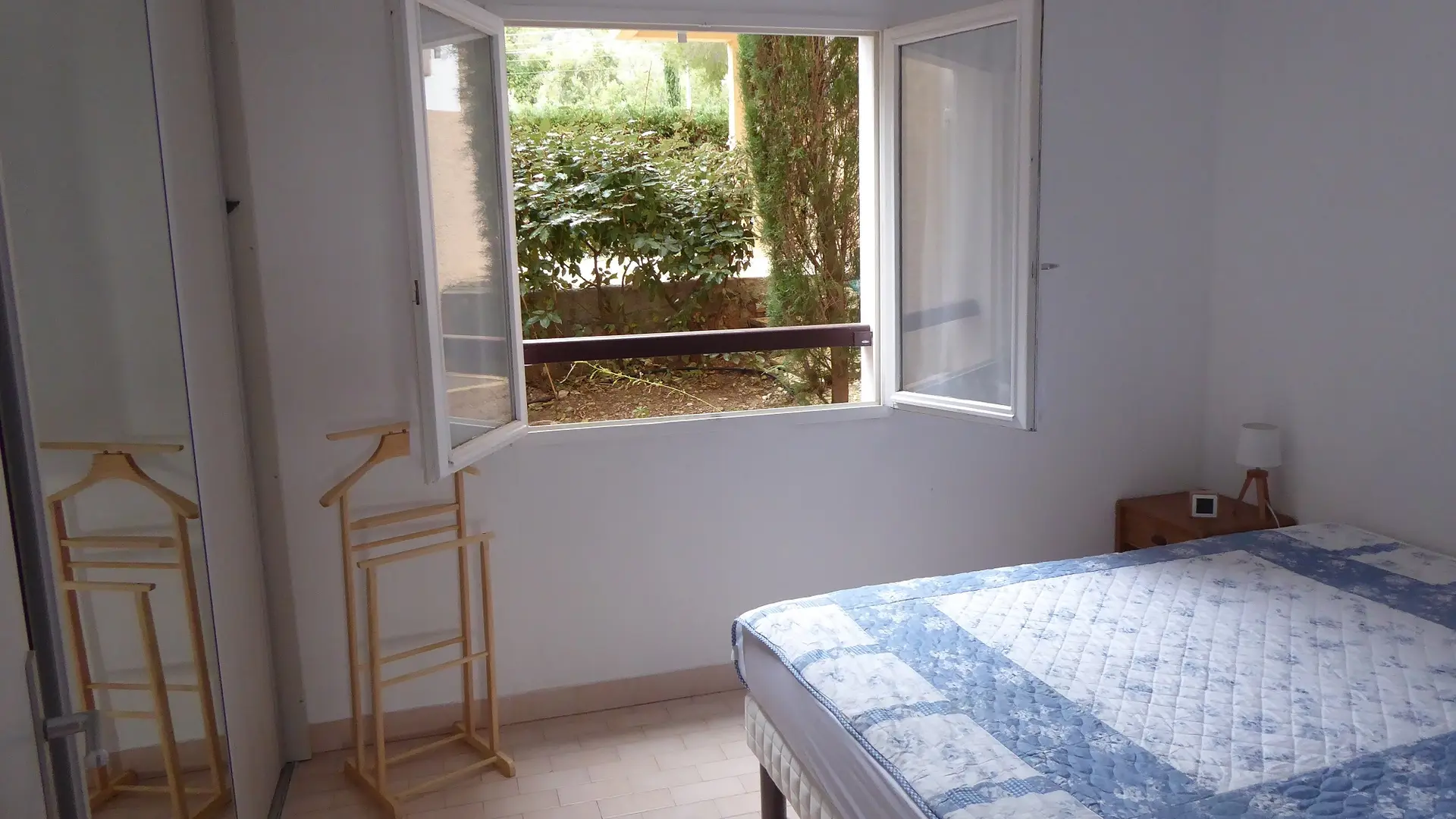 Dans copropriété fermée avec piscines, appartement de 2 pièces de 40 M², avec loggia fermée de 9 M², situé au Rez de jardin, exposé sud composé d’une chambre (lit 160x190), séjour, cuisine équipée, salle d’eau, WC séparé, vue mer, terrasse et jardinet clôturé de 30 m² et parking privatif.