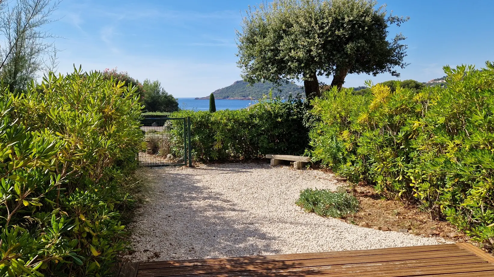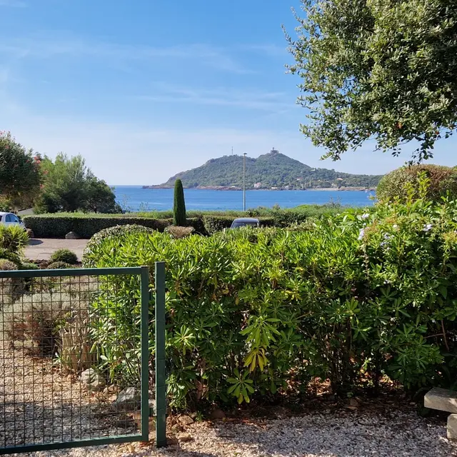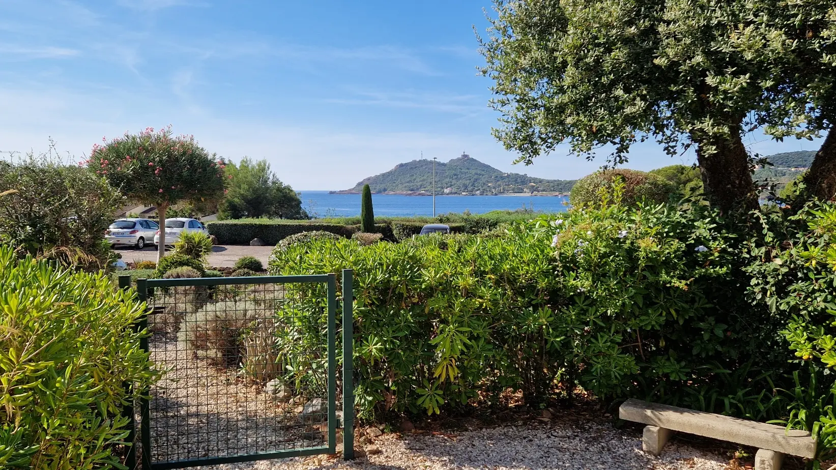 Appt 2 piéces, résidence avec piscine, rez de jardin, 100 m de la plage, 4 personnes, vue exceptionnelle sur la baie d’Agay. Parking privatif, proximité commerces, restaurants et base nautique.