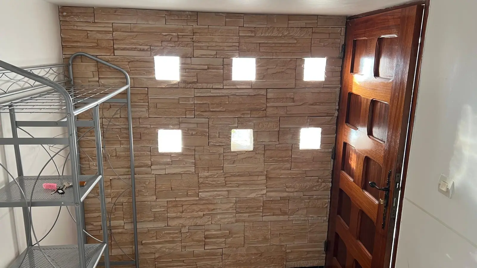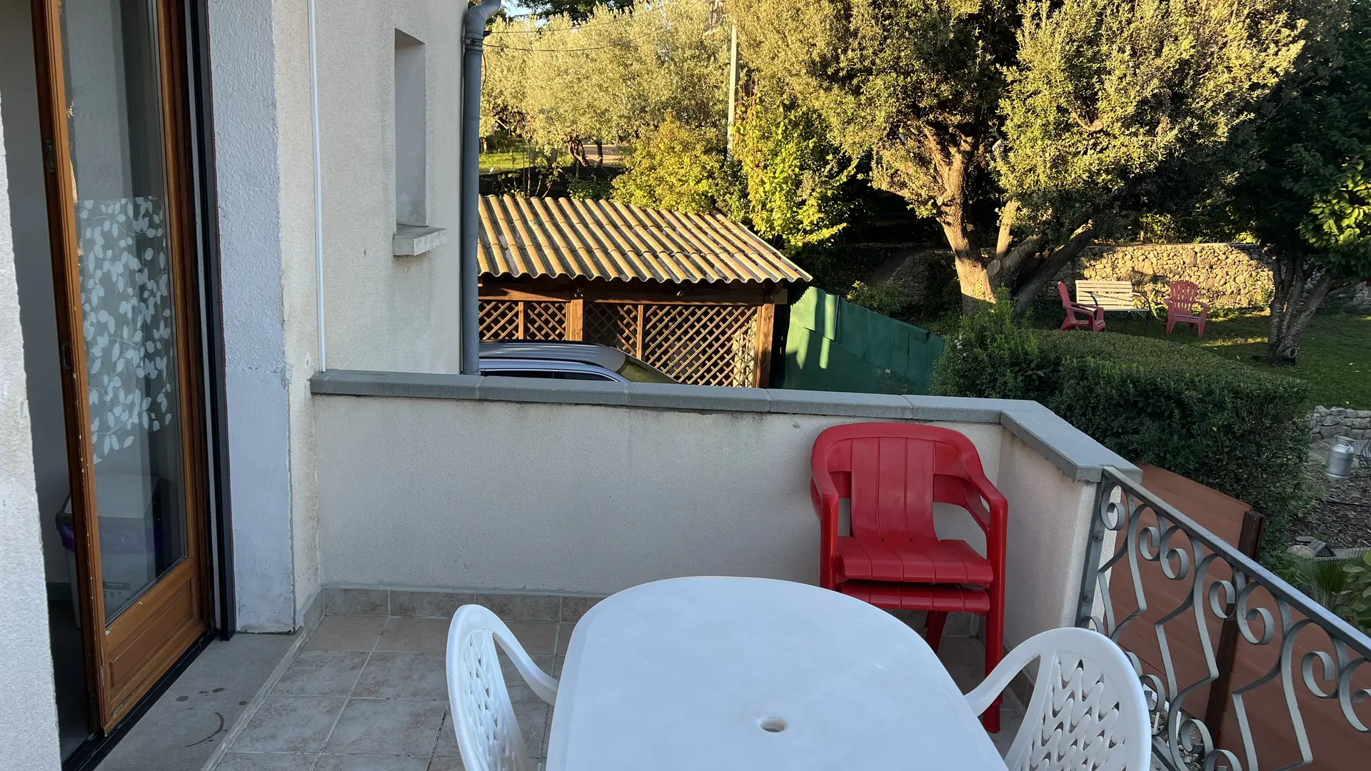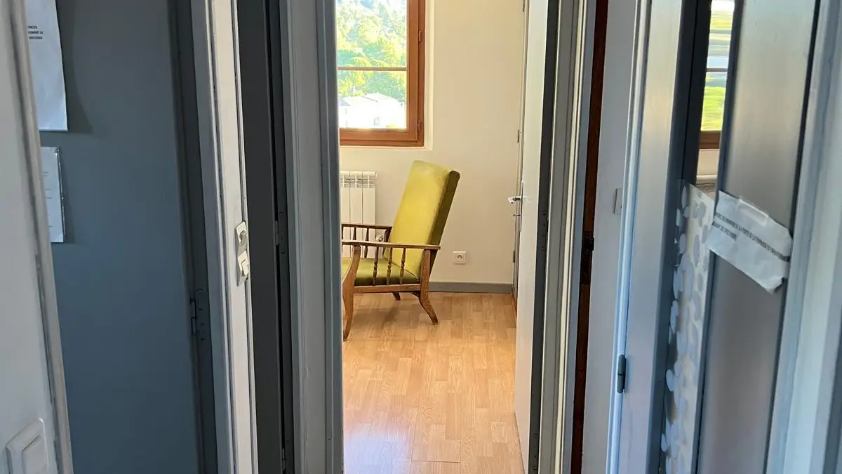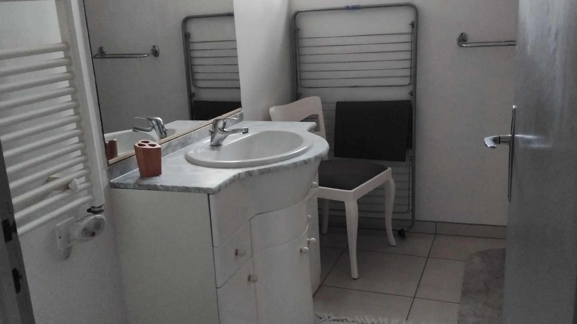 L'entrée de l'appartement s'effectue par un vestibule au RDC équipé d'une penderie, d'étagères et d'un banc. L'appartement est au 1er étage. Toutes les pièces sont séparées :
