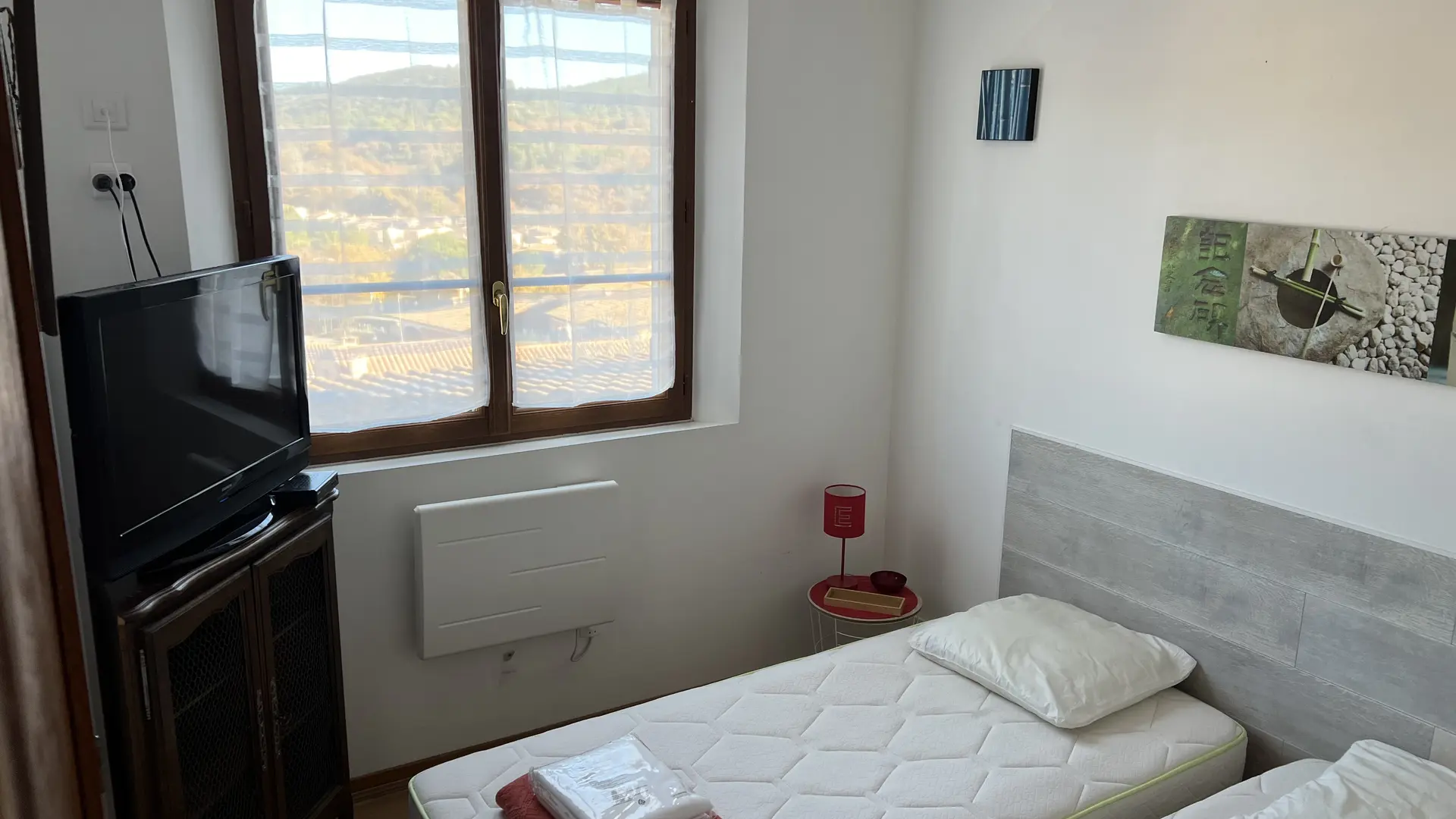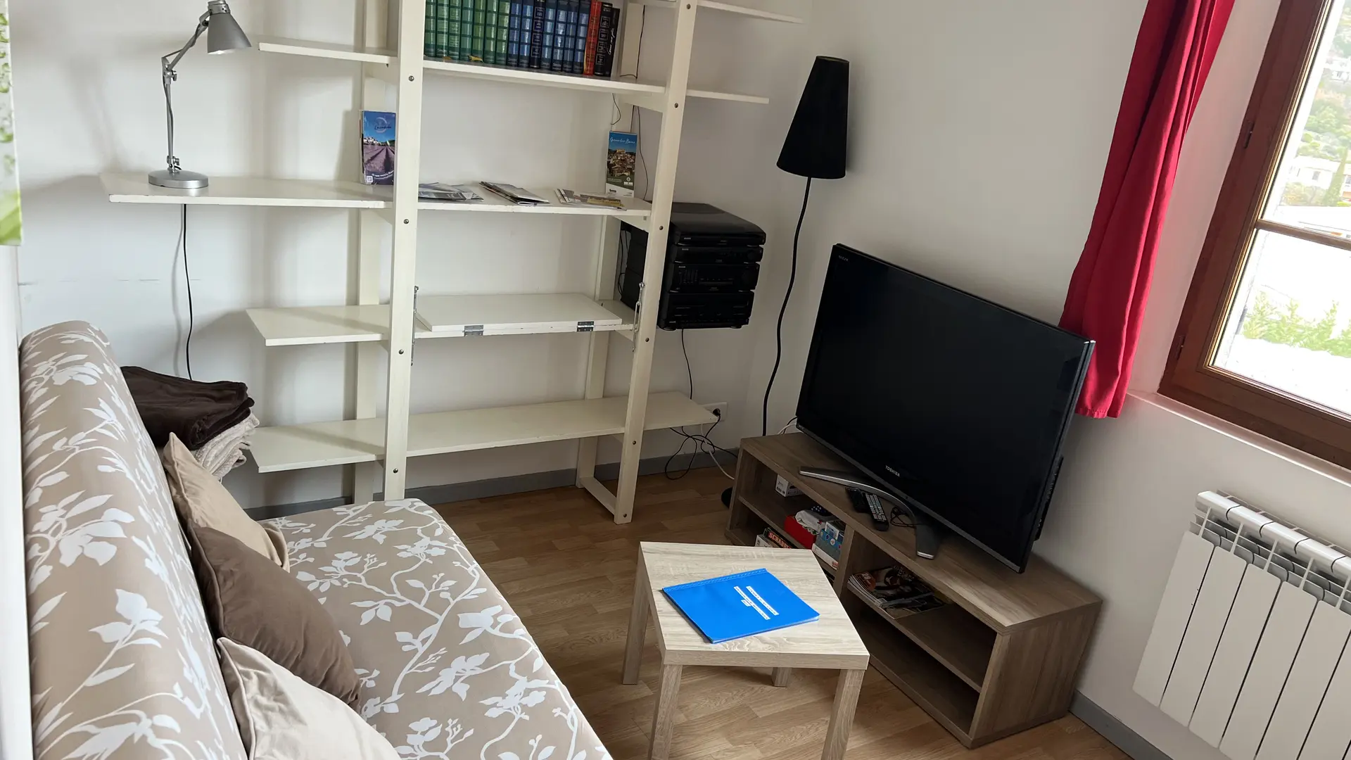 – Cuisine équipée, salon avec clic-clac et petit coin bureau, 1 chambre (2lits 90), salle de bain et WC.