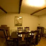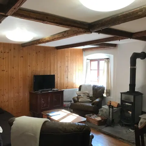 Il y a une salle de bains en commun et un WC séparé. Une cuisine bien équipée avec lave-vaissselle, une grande pièce de vie salle à manger , salon et une cheminée en pierre.