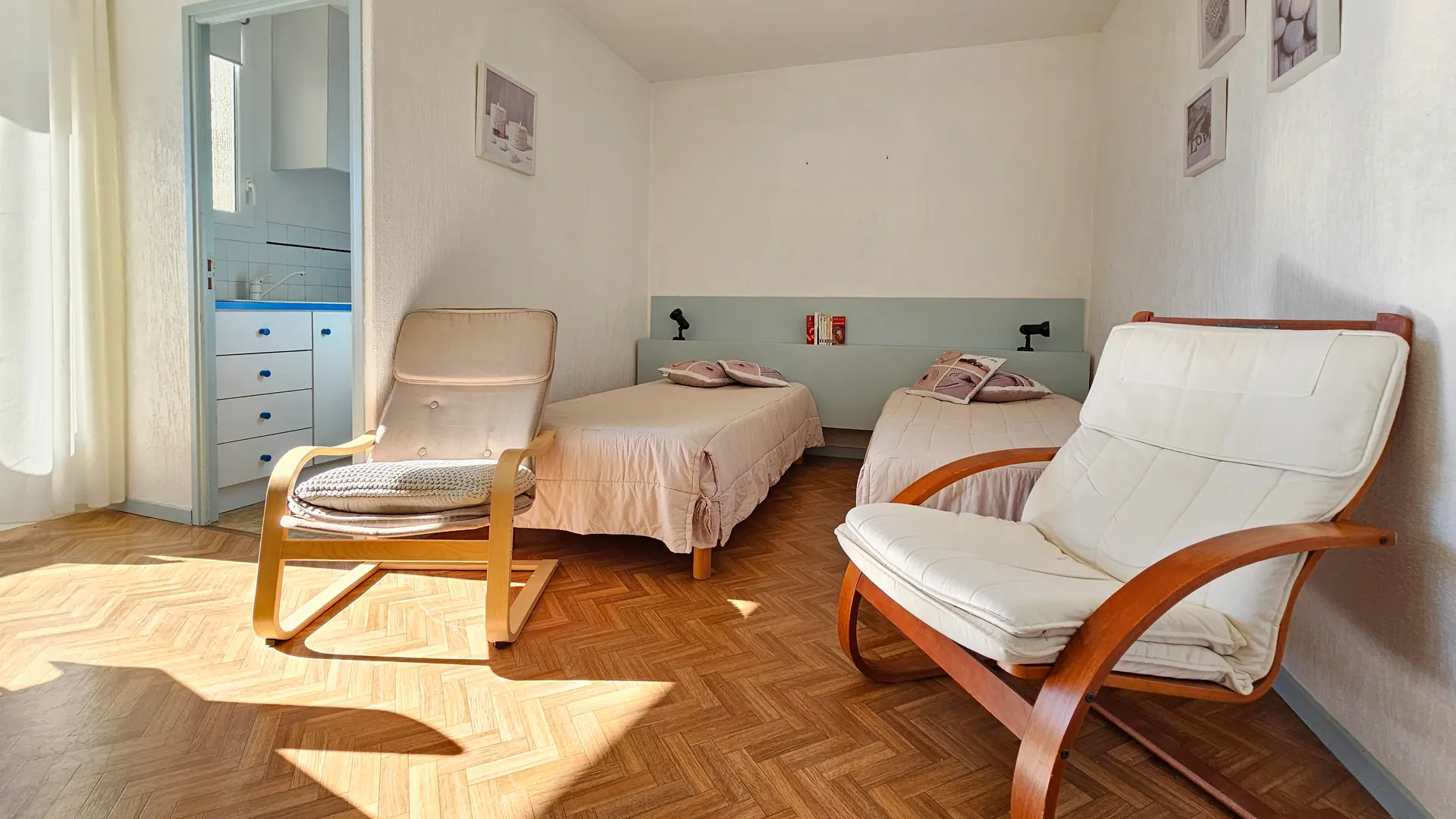Situé dans la résidence Le Belle Viste, ce studio de 33m2 chaleureux et fonctionnel offre tout le confort nécessaire pour un séjour bien-être :
