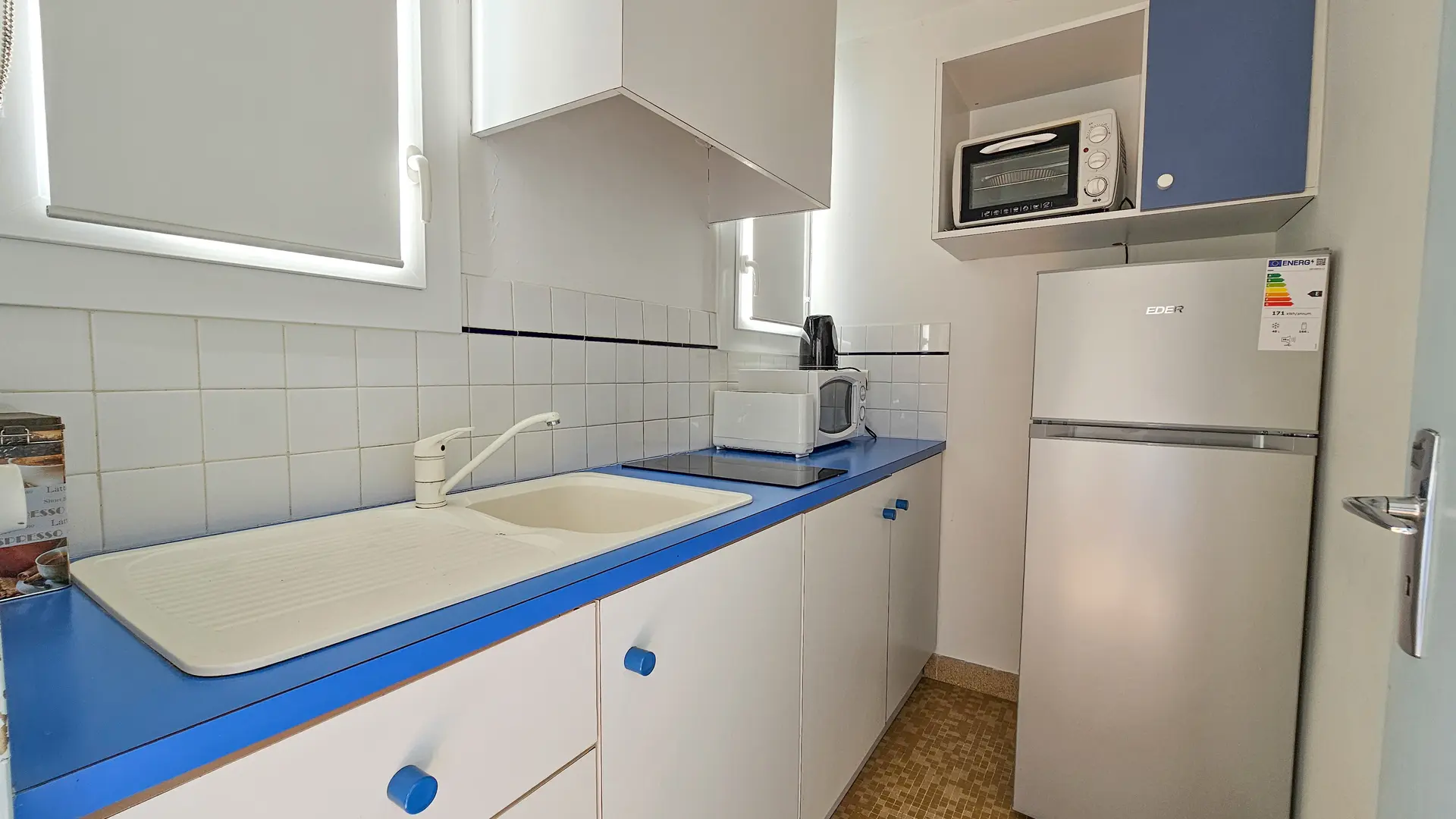 Cuisine équipée (plaques, réfrigérateur, mini-four, micro-ondes, cafetière...)